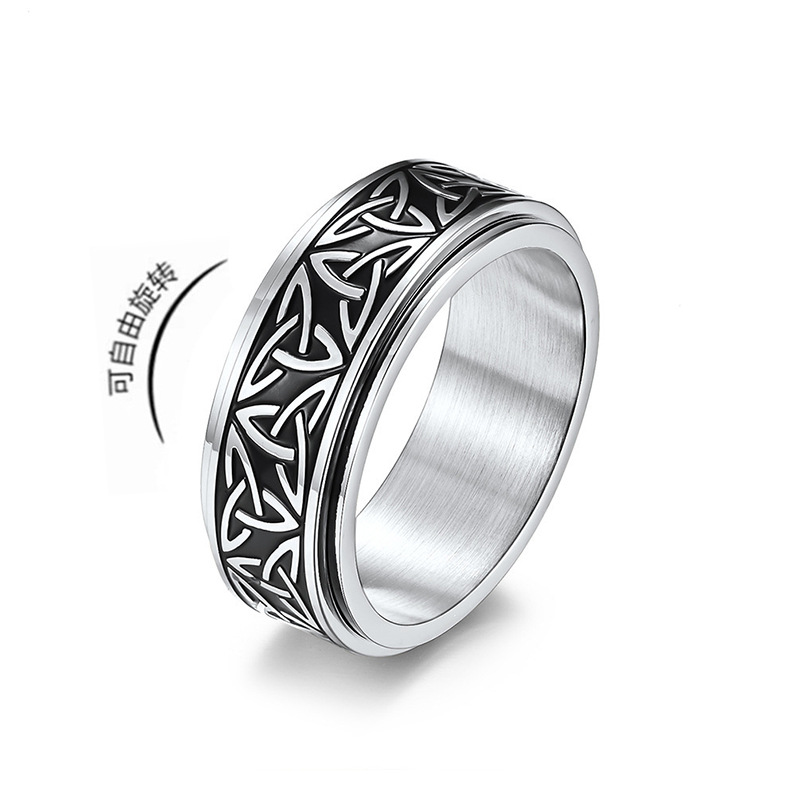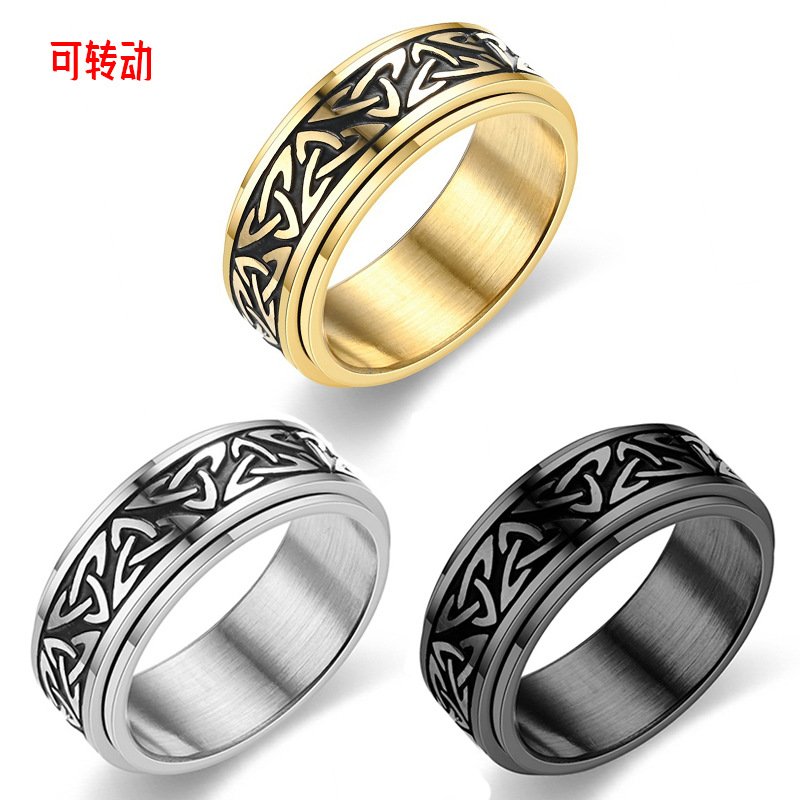 国境を越えた爆発物のソース卸売りチタン鋼指輪男欧米風ケルト三角結回転動解凍指輪