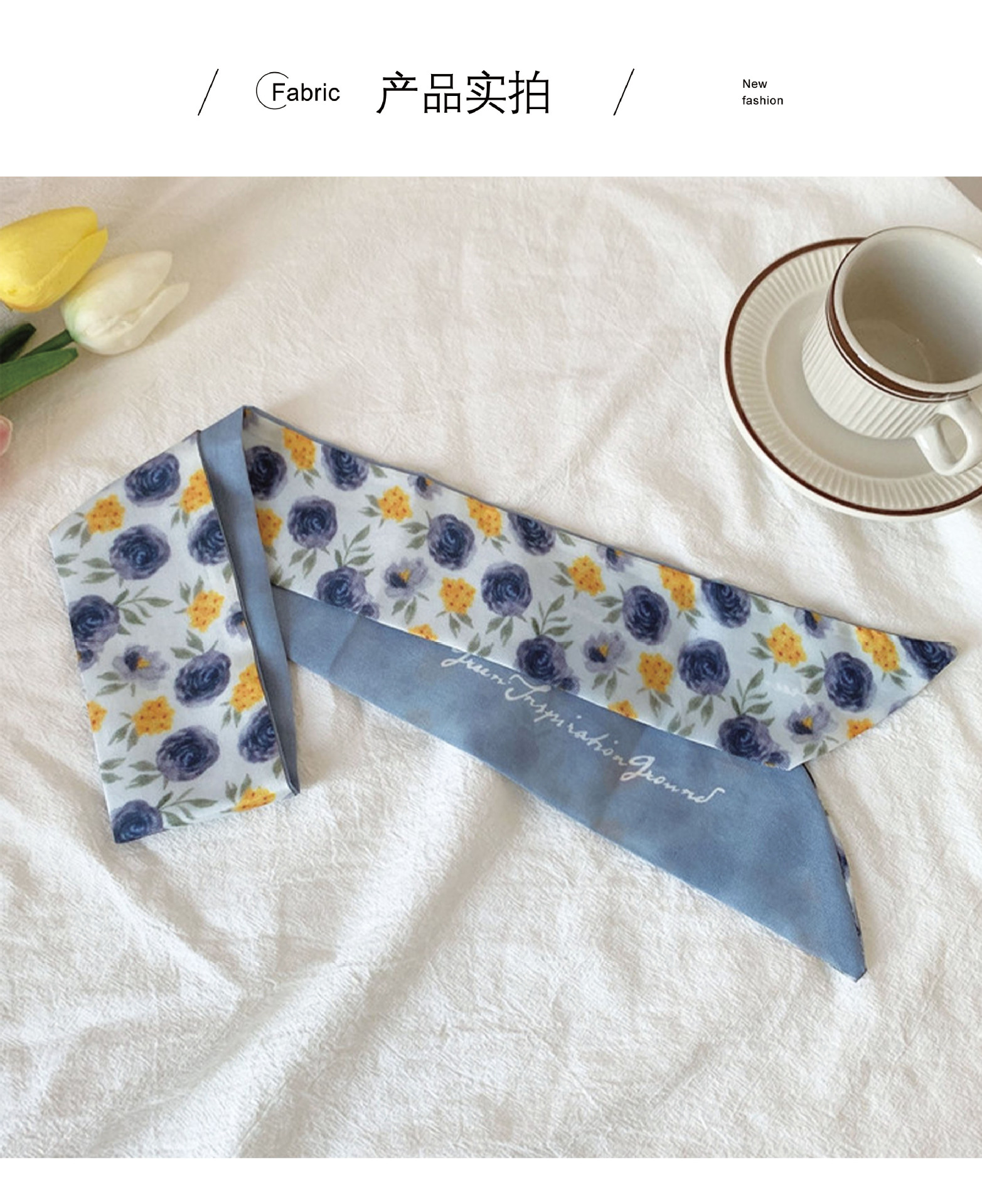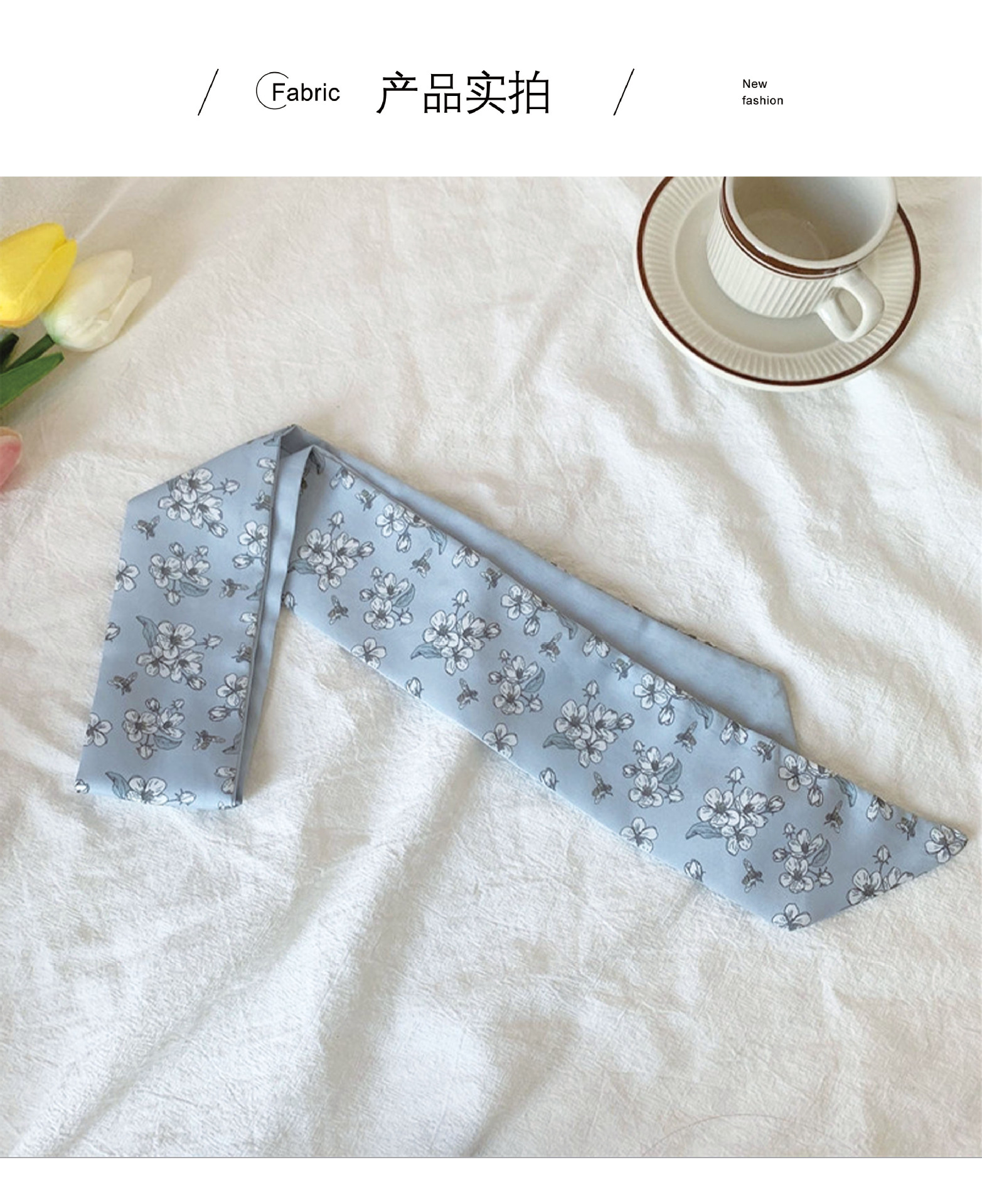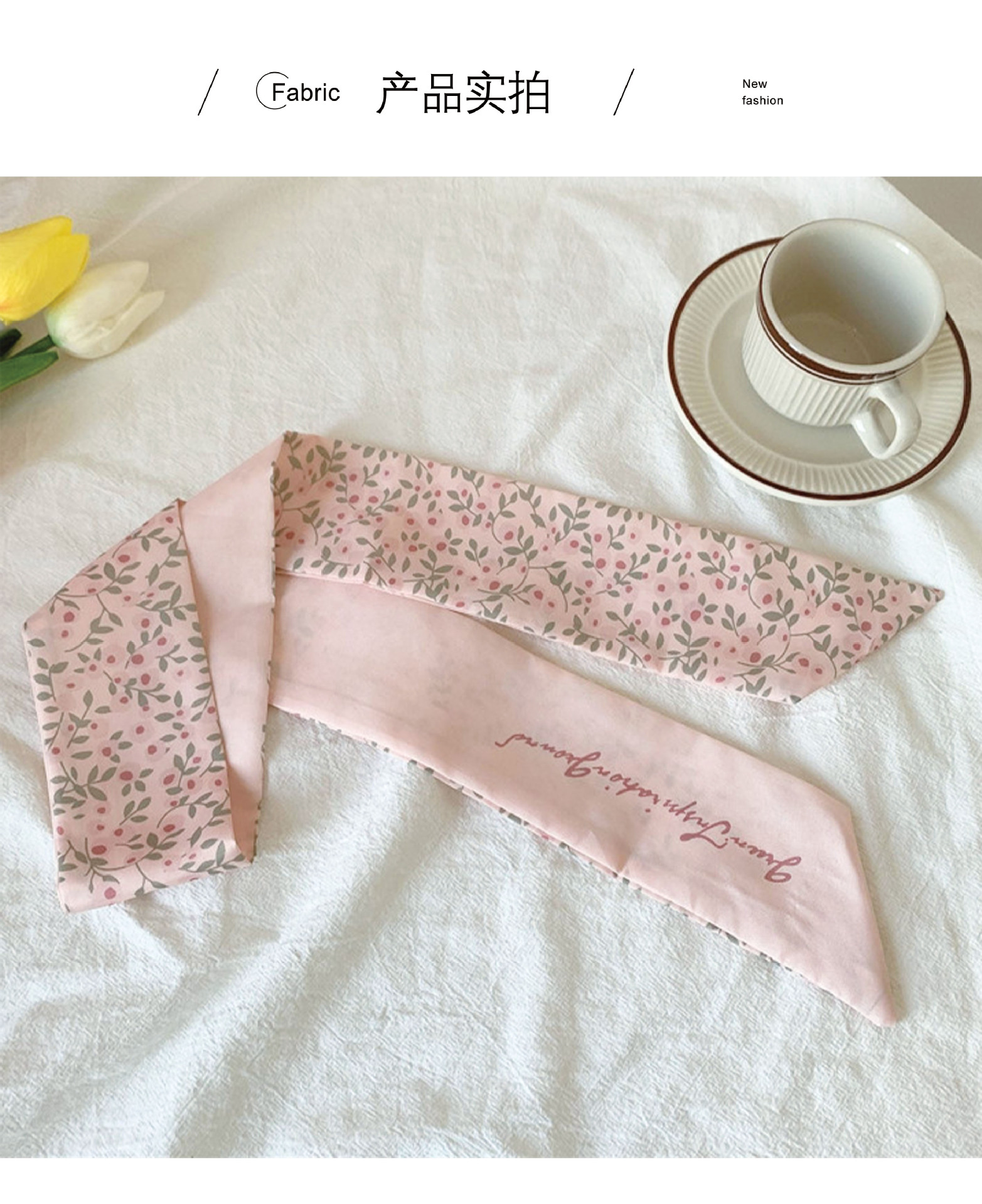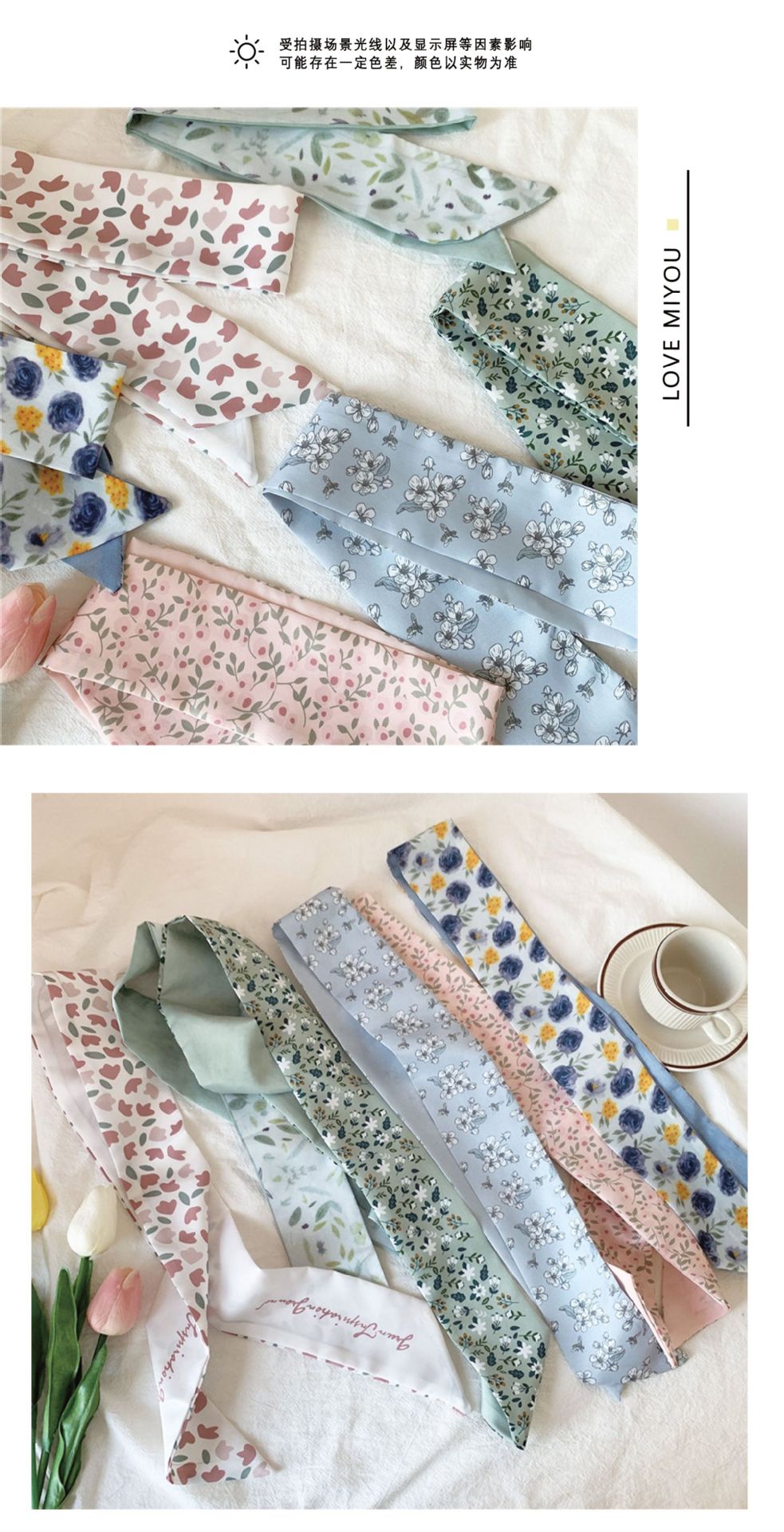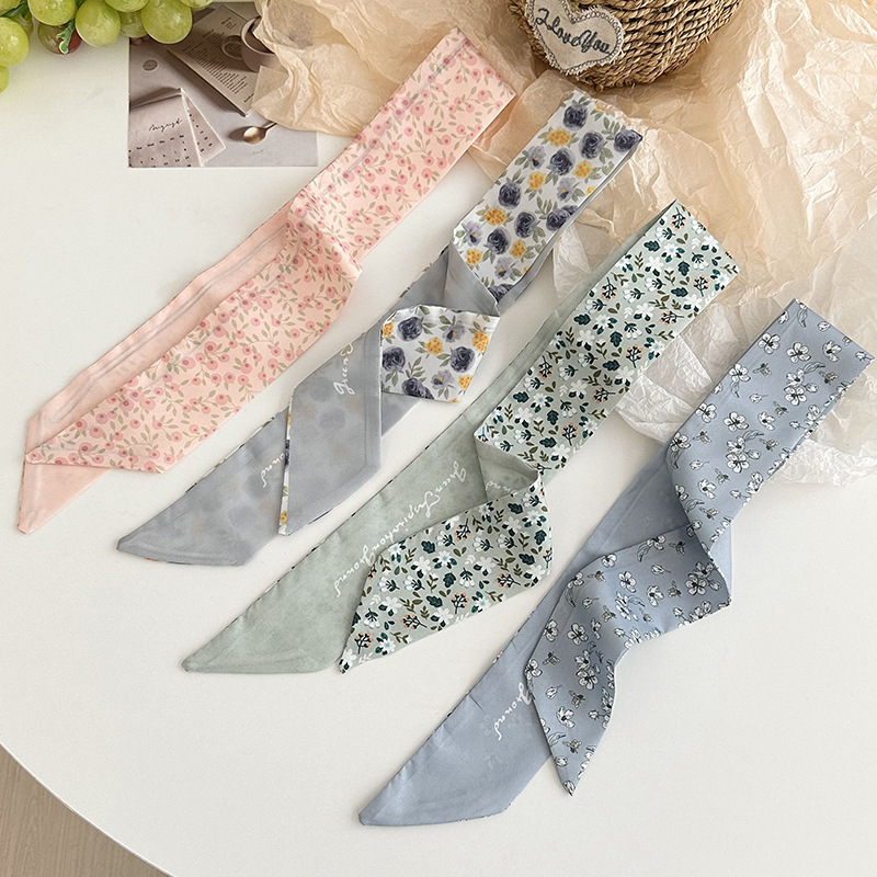 尖角花柄両面プリント細長ストリップシルクスカーフリボン女性用細長韓国風装飾ヘアバンド韓国風ヘッドウェア