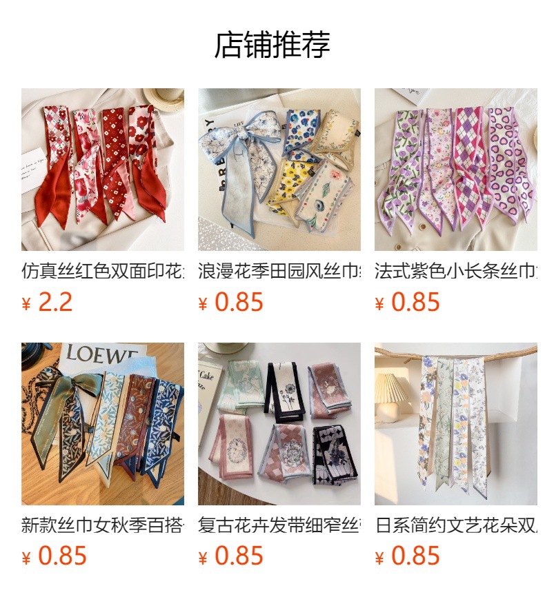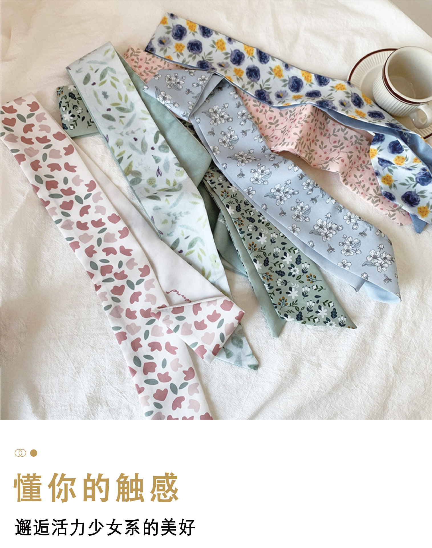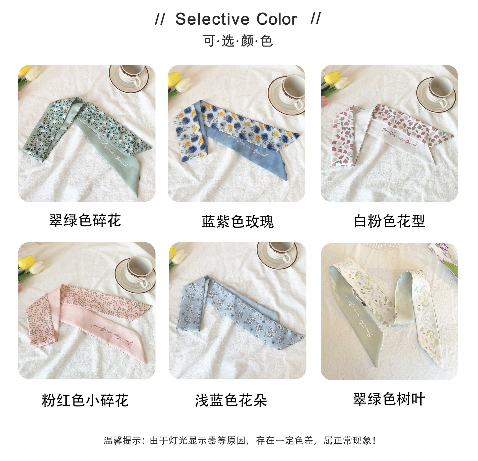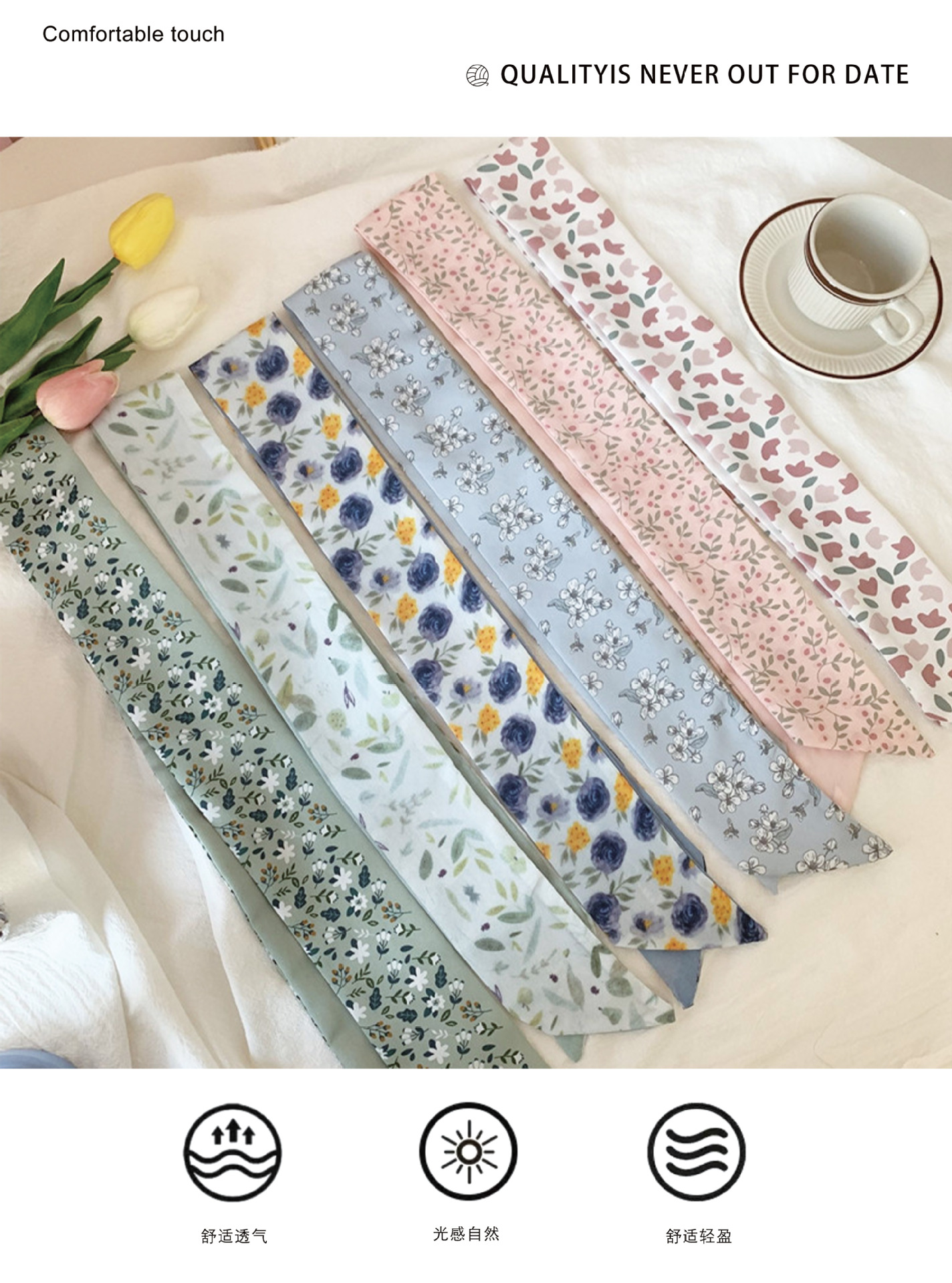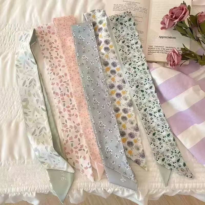 シルクスカーフ、韓国風雰囲気、新しいスタイル、エレガントな装飾、小さなスカーフ、花柄スカーフ、ヘアバンド、ヘアタイ、バッグストラップ、リボン