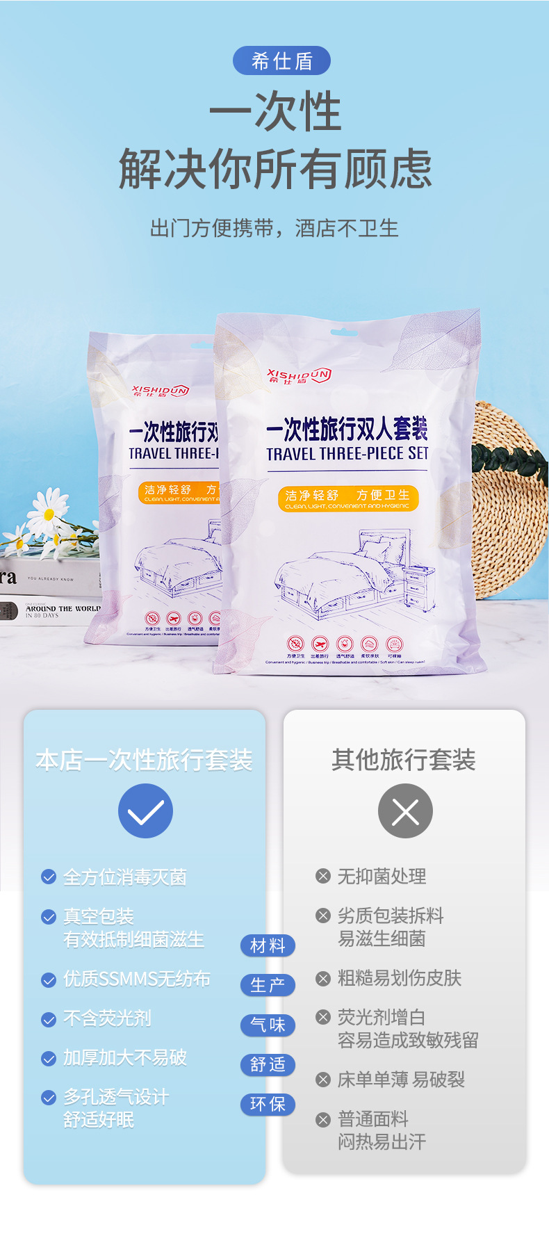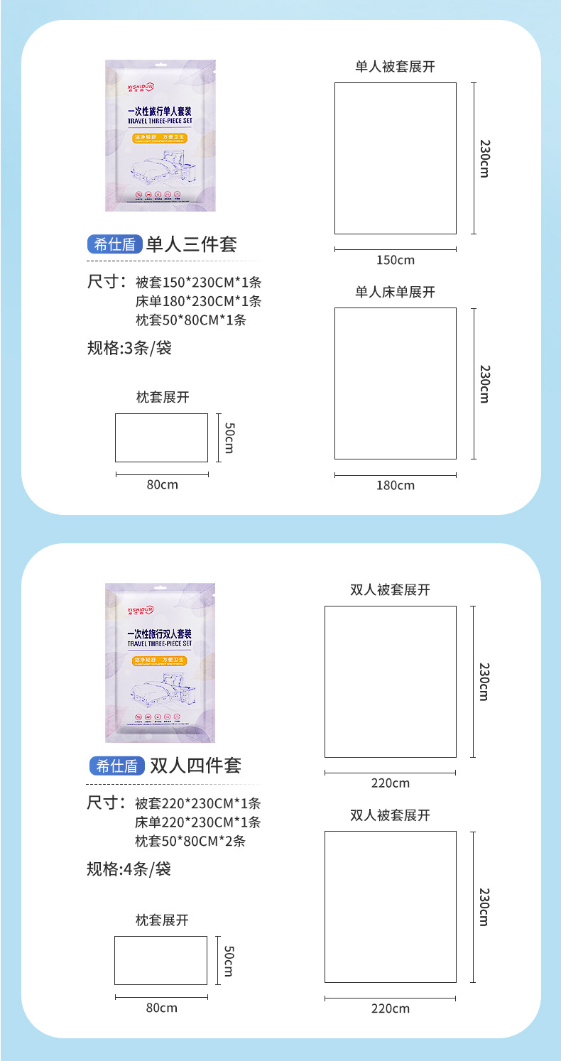 不織布旅行枕カバー使い捨て二人シーツ四点セット旅行四点セットホテル用品