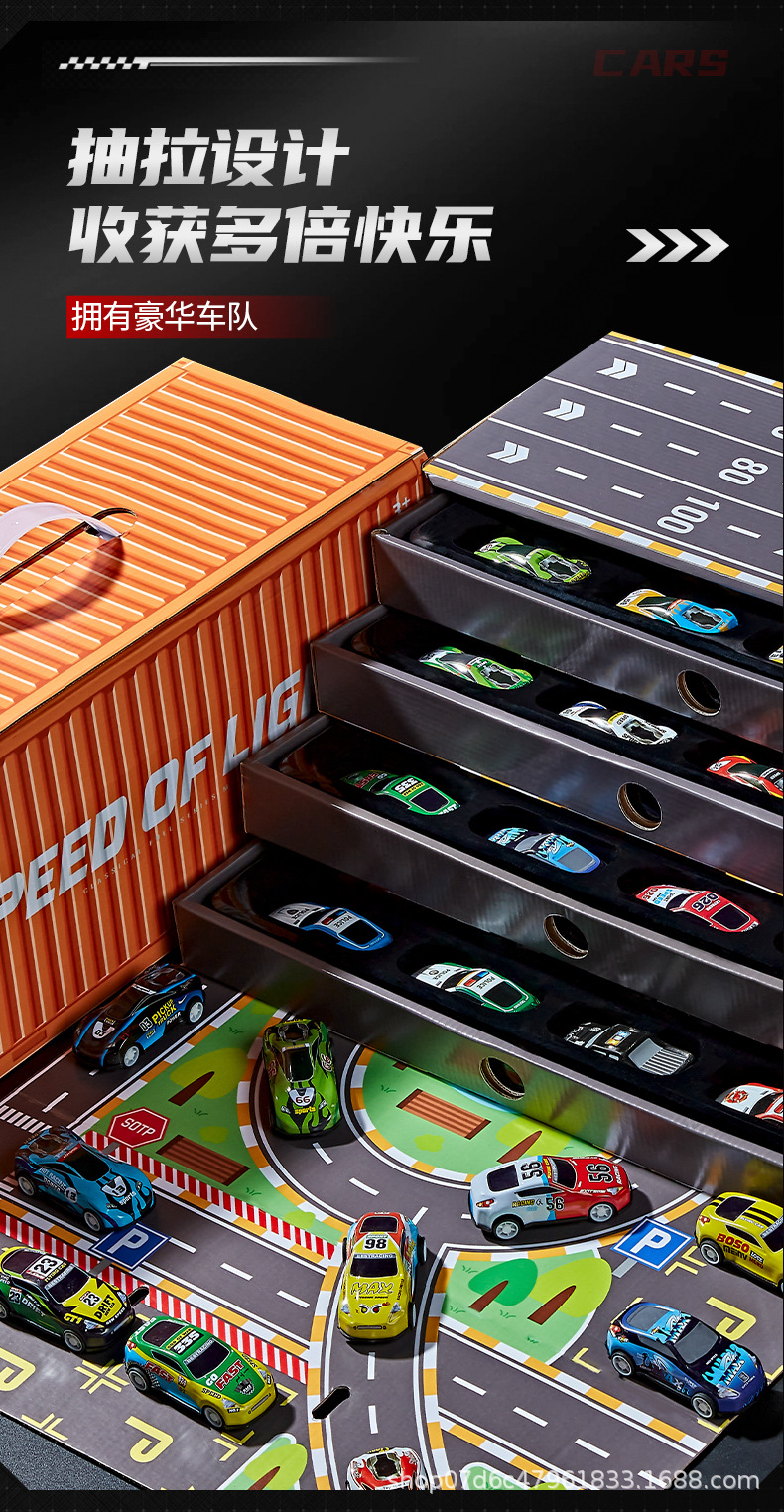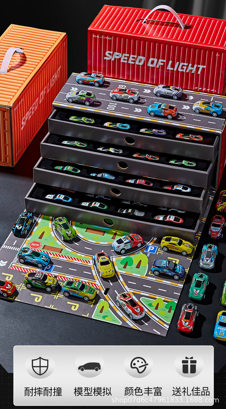 3層引き出しプルバックカー24台 - 赤いギフトボックス,3段引き出しプルバックカー 24台 - オレンジのギフトボックス,48 台の 4 段引き出しプルバックカー - 赤いギフトボックス,48 4 段引き出しプルバックカー - オレンジのギフトボックス