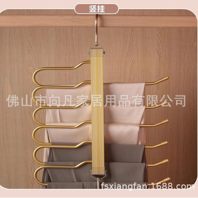 工场直売多机能アルミ合金マジックズボンラック滑り止め6层9段収纳付き伸缩折りたたみハンガー