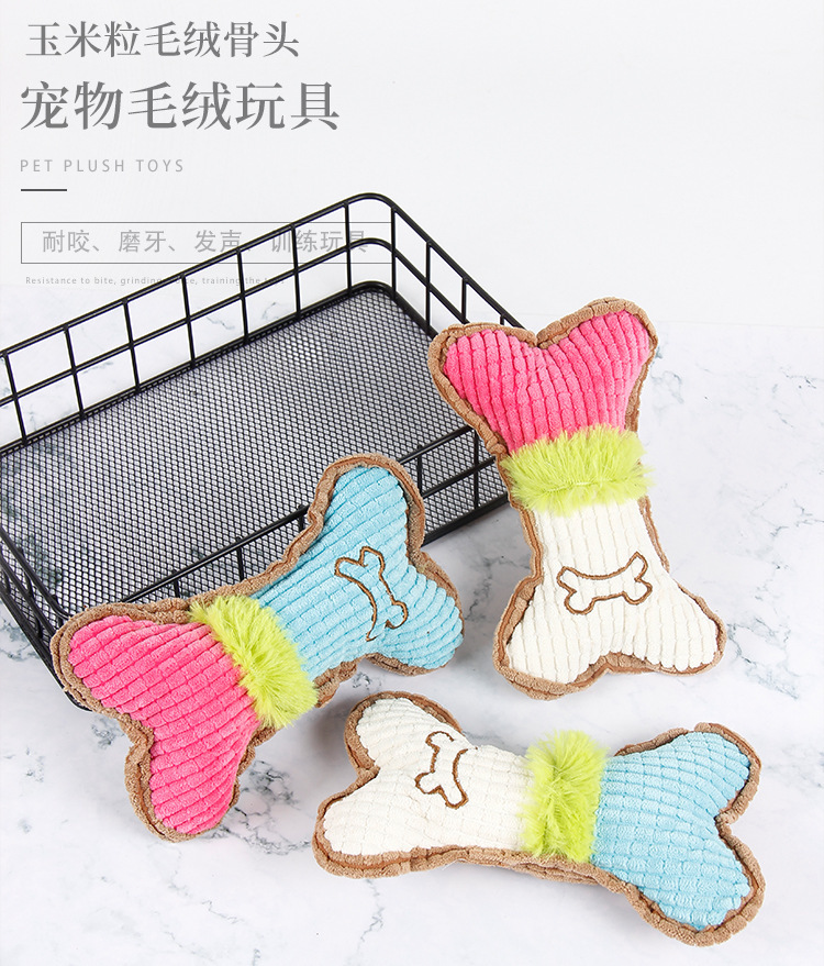 厂家现货宠物发声磨牙猫狗毛绒玩具玉米粒骨头耐咬解闷宠物玩具
