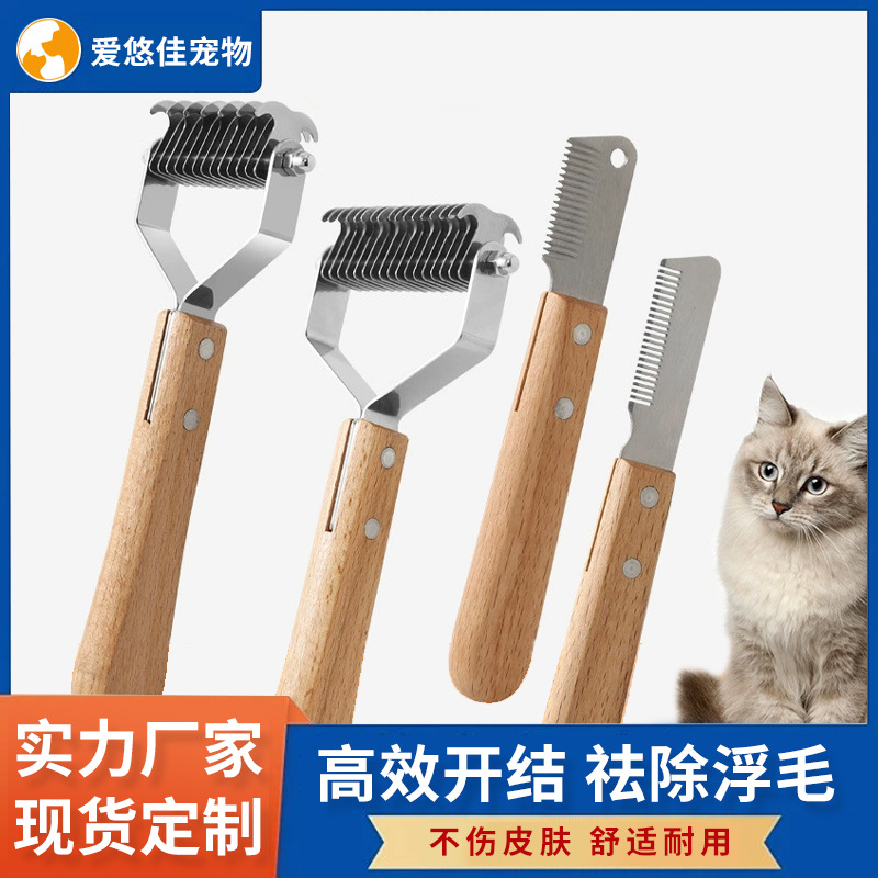 アマゾン越境ペット開結櫛木柄ステンレス刃犬開結刀が浮毛猫脱毛櫛に行く