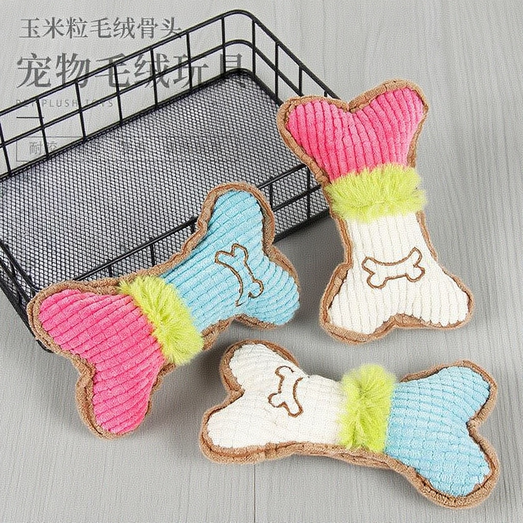 ペット用音が出る歯ぎしりおもちゃ、噛み応えのあるぬいぐるみ犬猫用おもちゃ、コーン粒骨型、メーカー直送