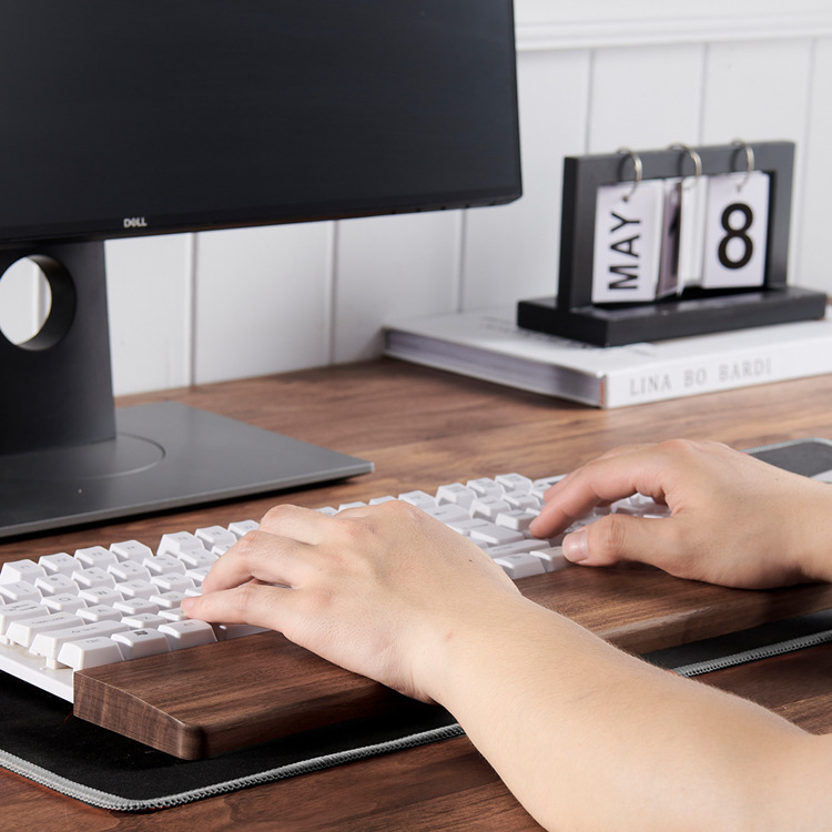 木のキーボードのブラケットの手のブラケットの黒胡桃の木製の手首の木の托の木製の機械のキーボードの木の手の托の腕は簡単です。