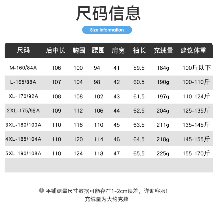 ダウン充填量