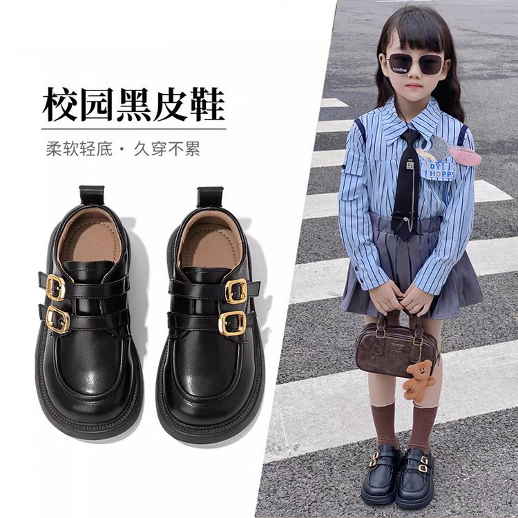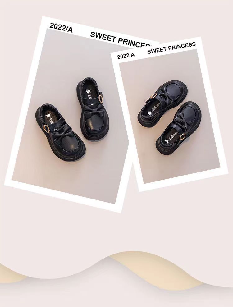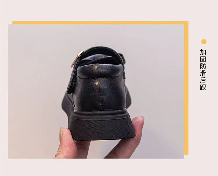子供用プリンセス風おしゃれでトレンディな革靴 2025年秋冬新作 イギリス風女の子用黒ローファーシューズ トレンド