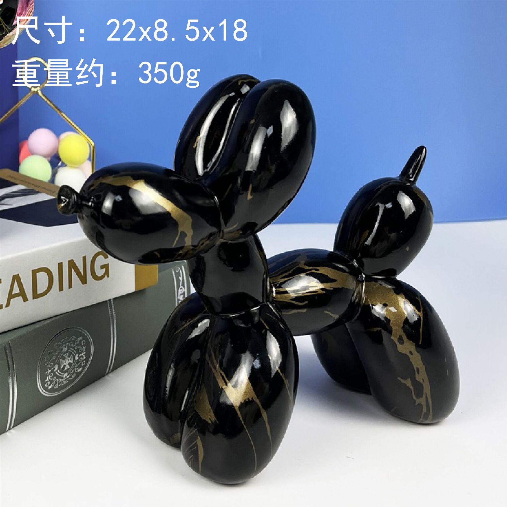 北欧の気球の犬の置物はシンプルで、贅沢な創意樹脂工芸品の家庭のリビングルームのテレビの棚のデスクトップの装飾品です。
