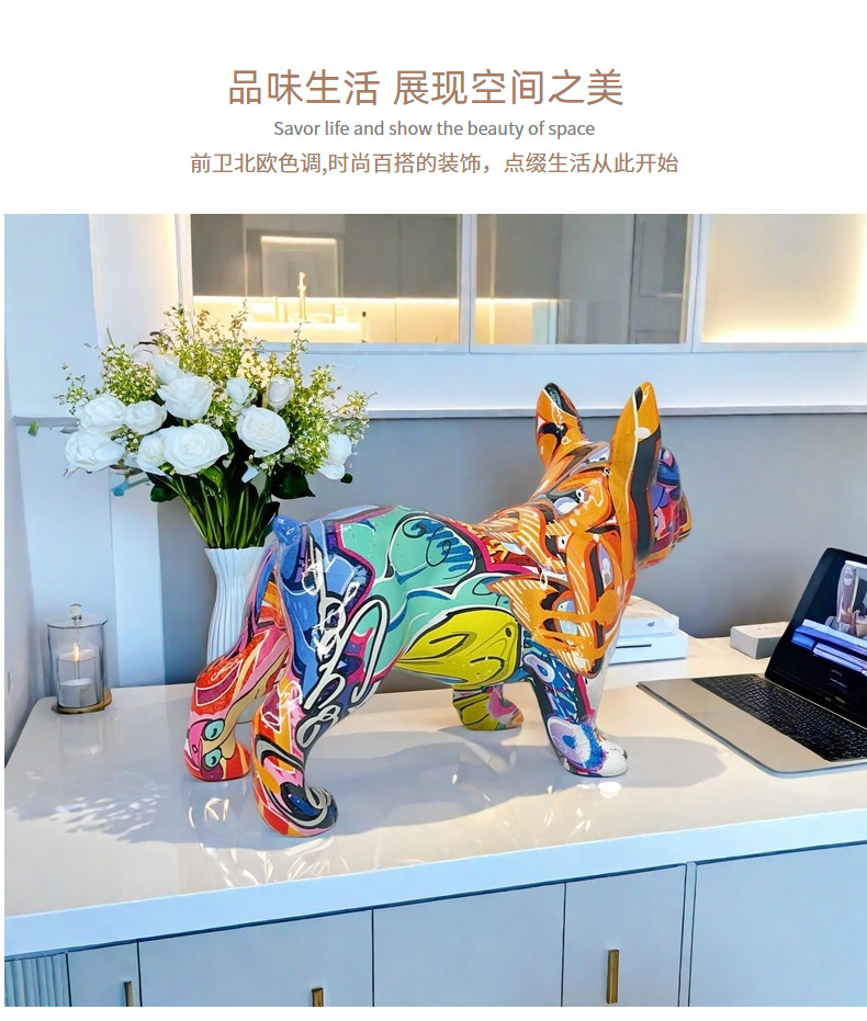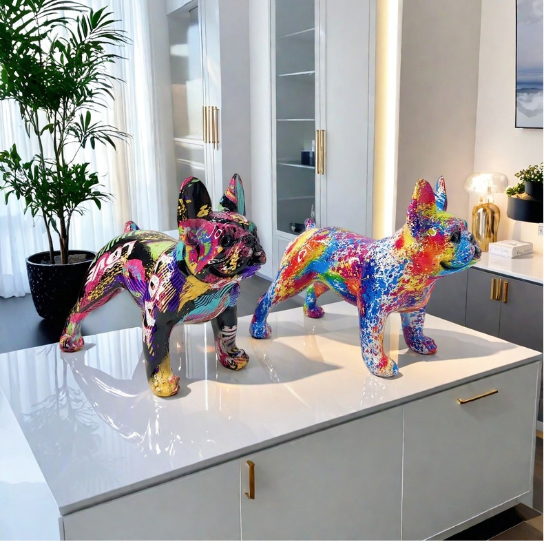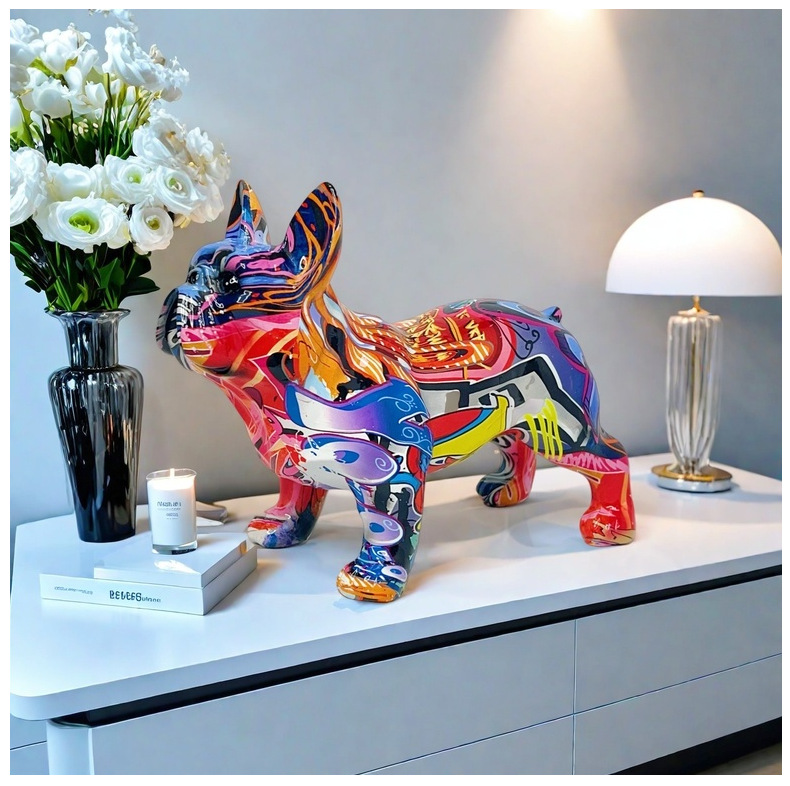 国境を越えた大型フレンチブルドッグホームリビングルームの装飾品玄関デスクトップ装飾樹脂工芸品卸売クリエイティブ