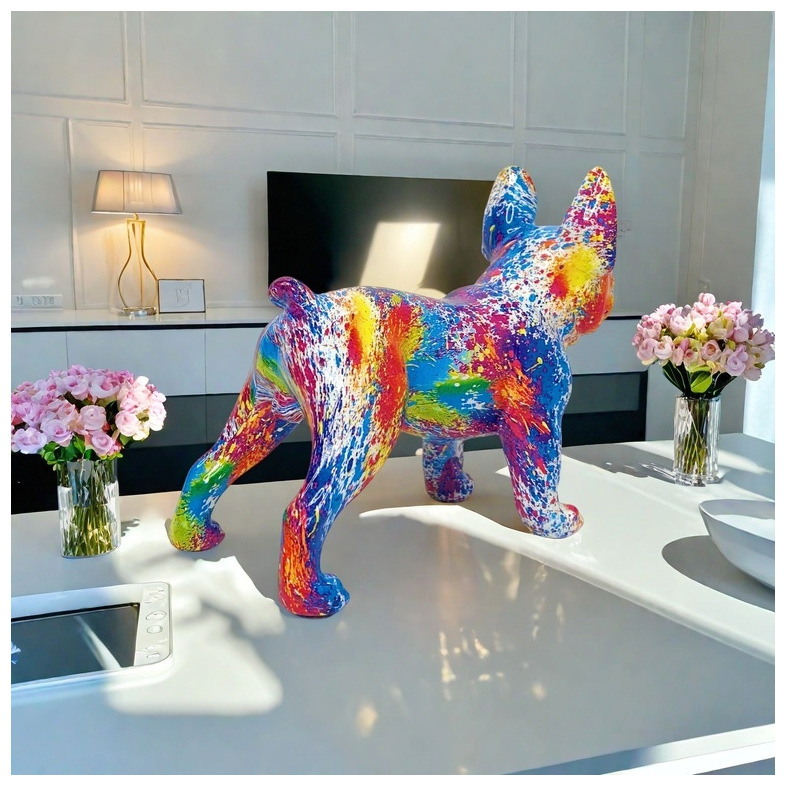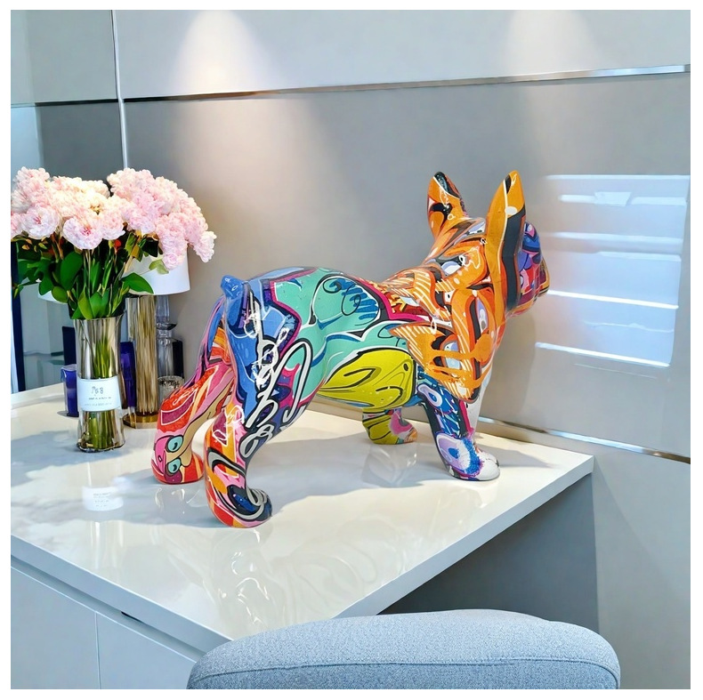 国境を越えた新作転写プリントカラフルなメガネをかけた犬の置物、家の玄関、オフィスデスク、樹脂工芸品、ワインキャビネットの装飾品