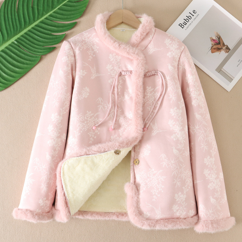 新中国式女装ファッション立襟盤ボタン刺繍コート中国風復古ゆったりとした保温古風