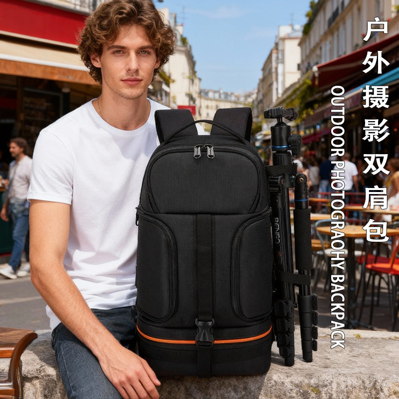 新款户外摄影器材收纳相机背包大容量防水耐磨单反相机包双肩侧取