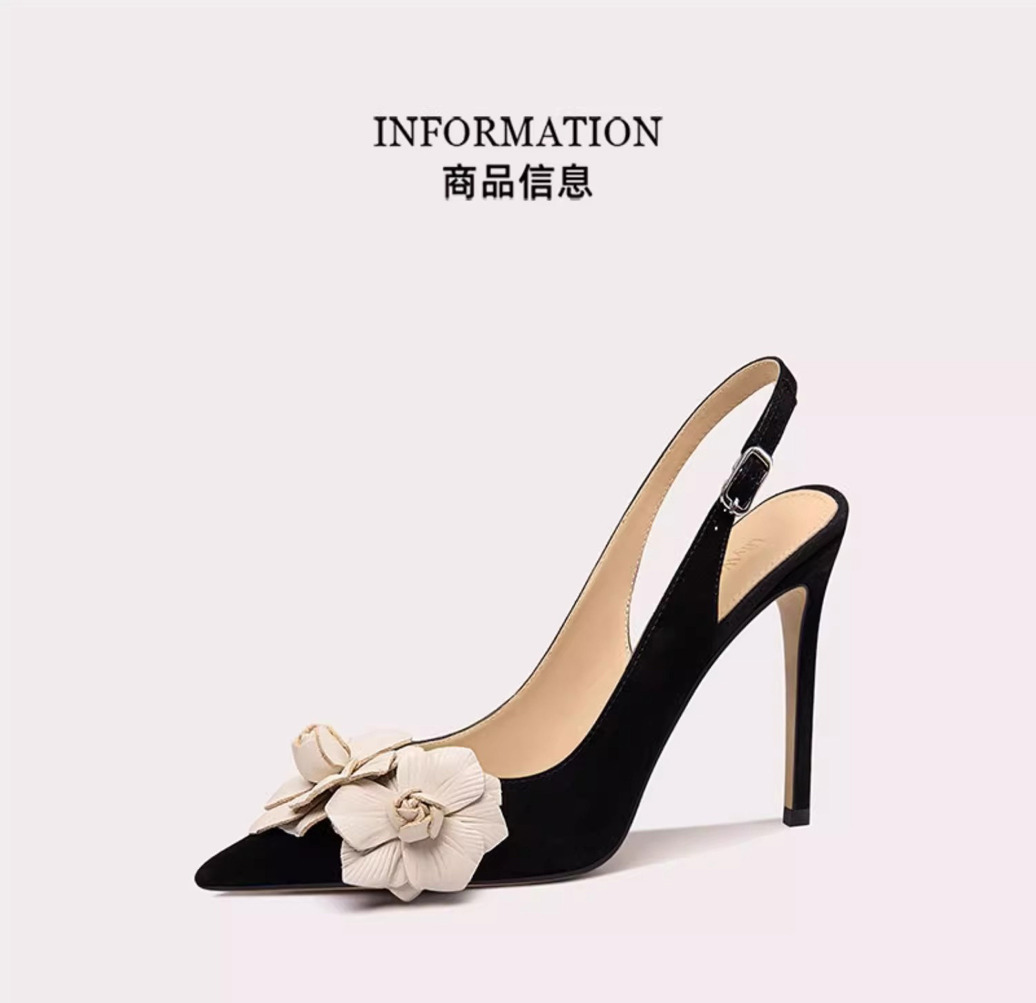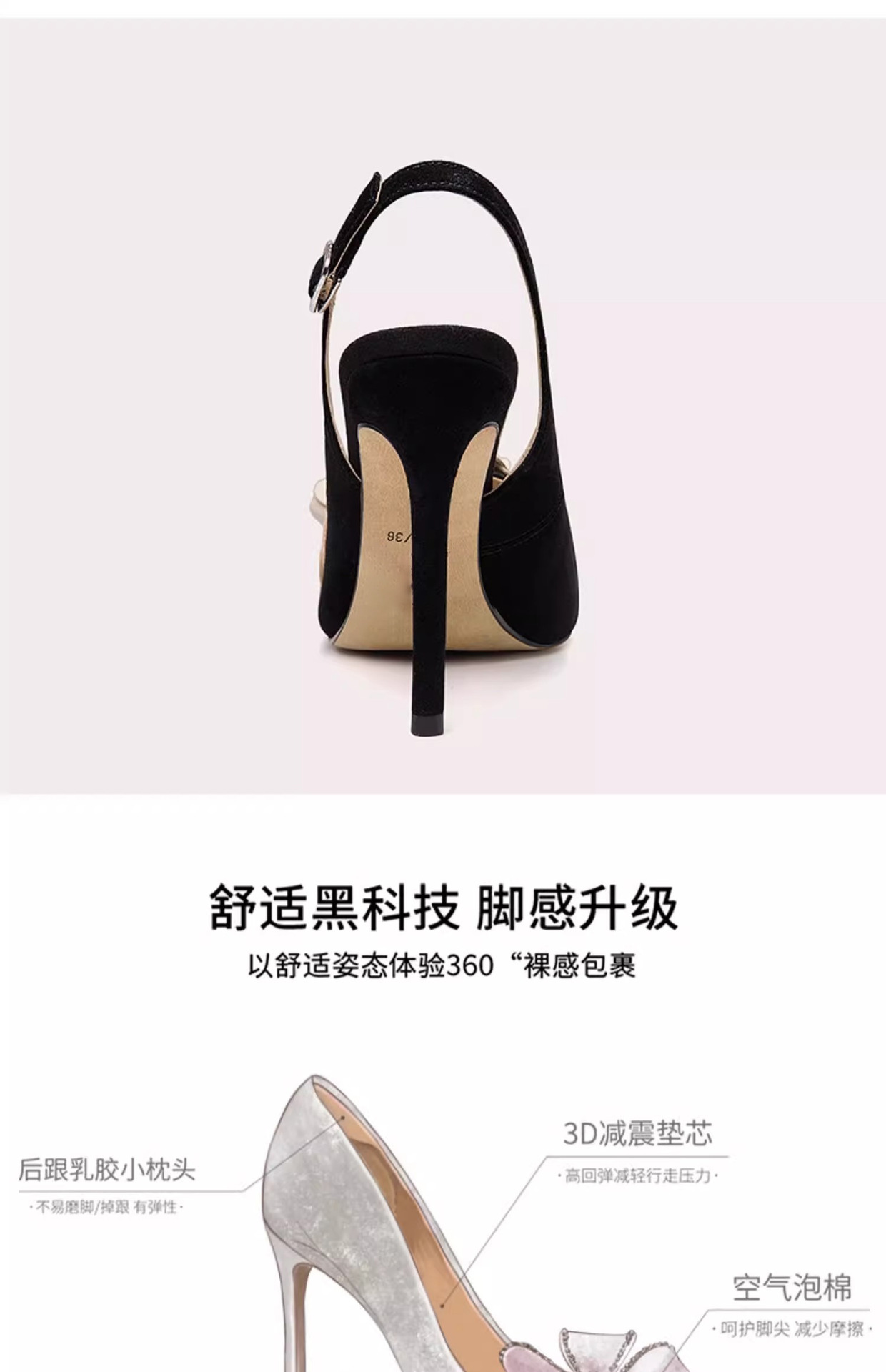 ネット赤爆金アンドロメダ風尖頭ハイヒール2025新包頭浅口蝶ネクタイ一字ボタン付き女子サンダル