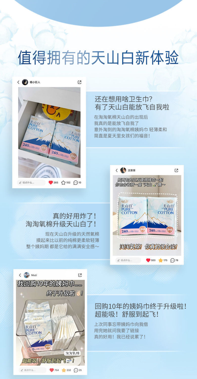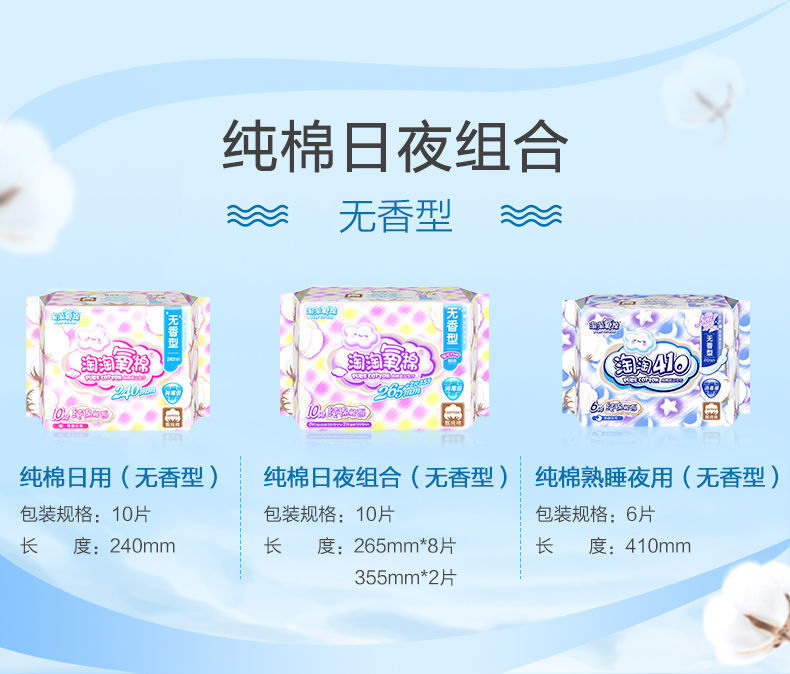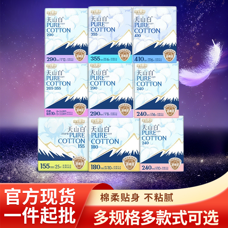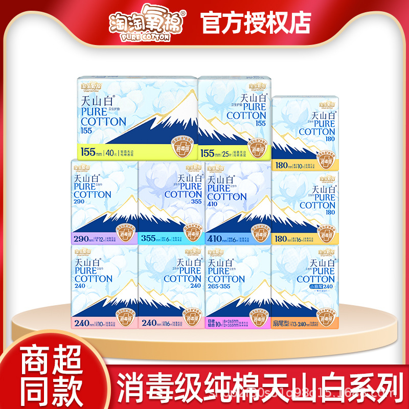 淘淘氧棉天山白卫生巾日用夜用熟睡裤学生日夜组合姨妈巾整箱批发