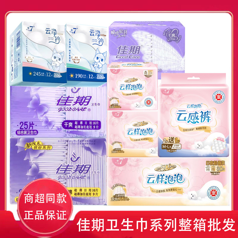 Jiaqi 生理用ナプキン カラフルなライトフェザーシリーズ + 7 シリーズ昼夜女の子全箱卸売本物の組み合わせパックおばさんナプキン