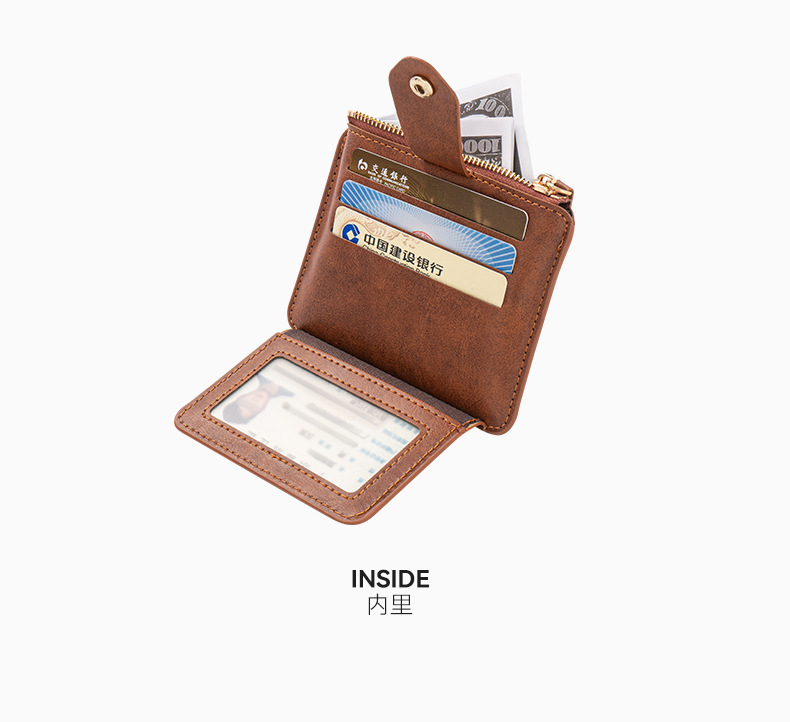 多機能カードケース付き財布、証明書入れ、卸売メンズ財布、レトロな横型レザー風カードケース、ジッパー付き