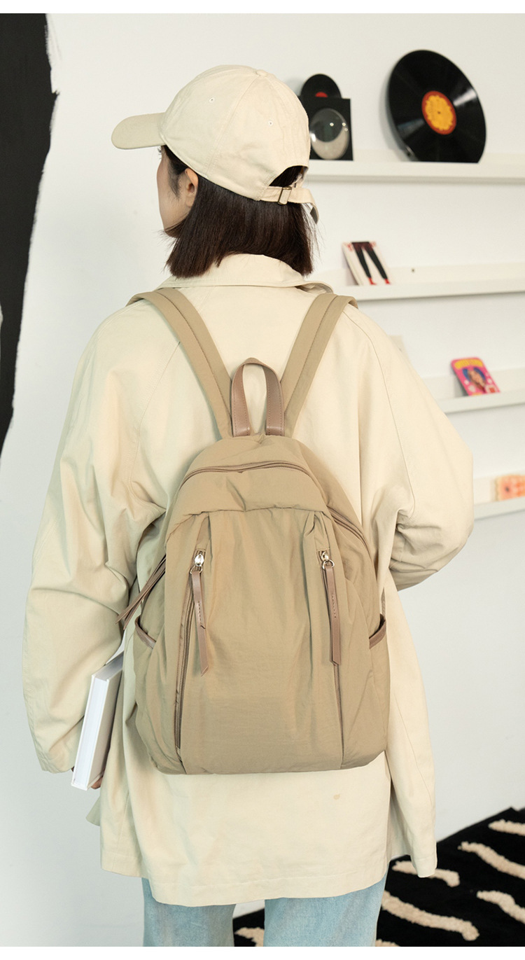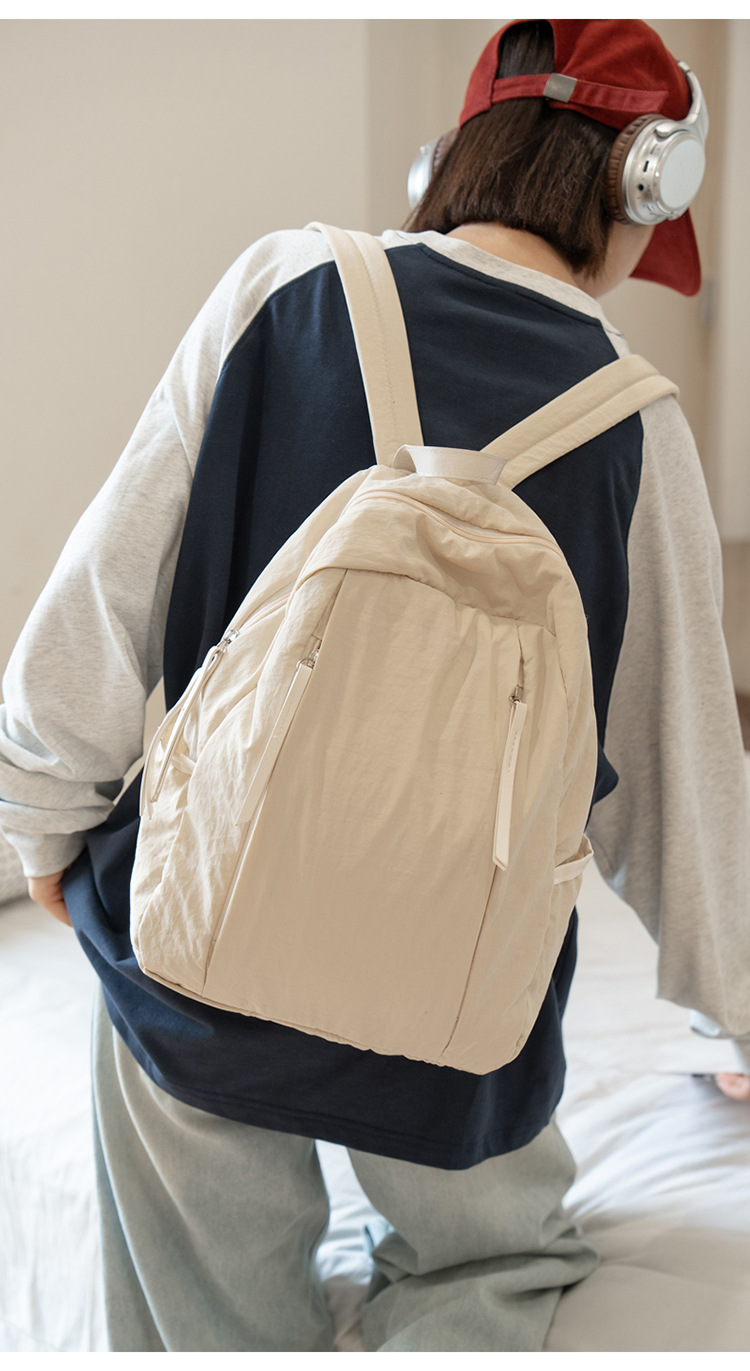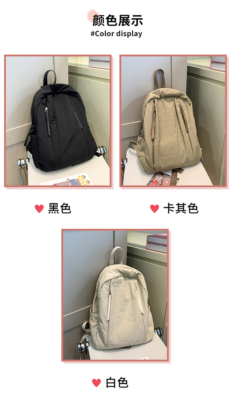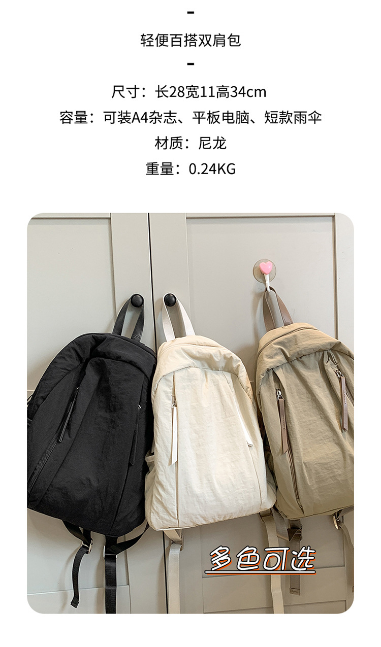 女轻便初高中生背包日系休闲书包女大学生简约纯色双肩包女学院风