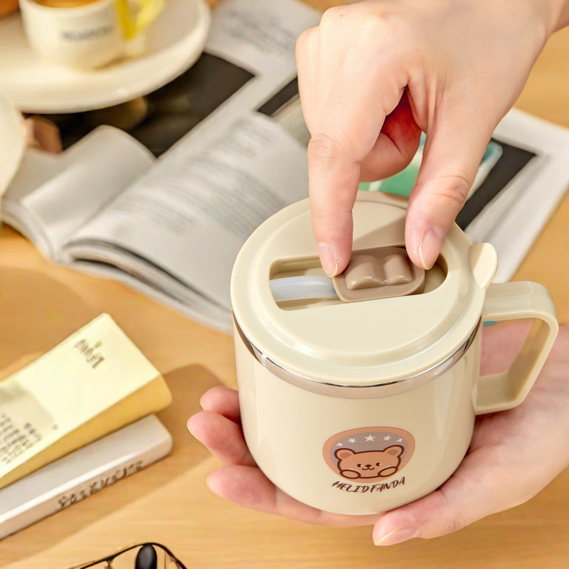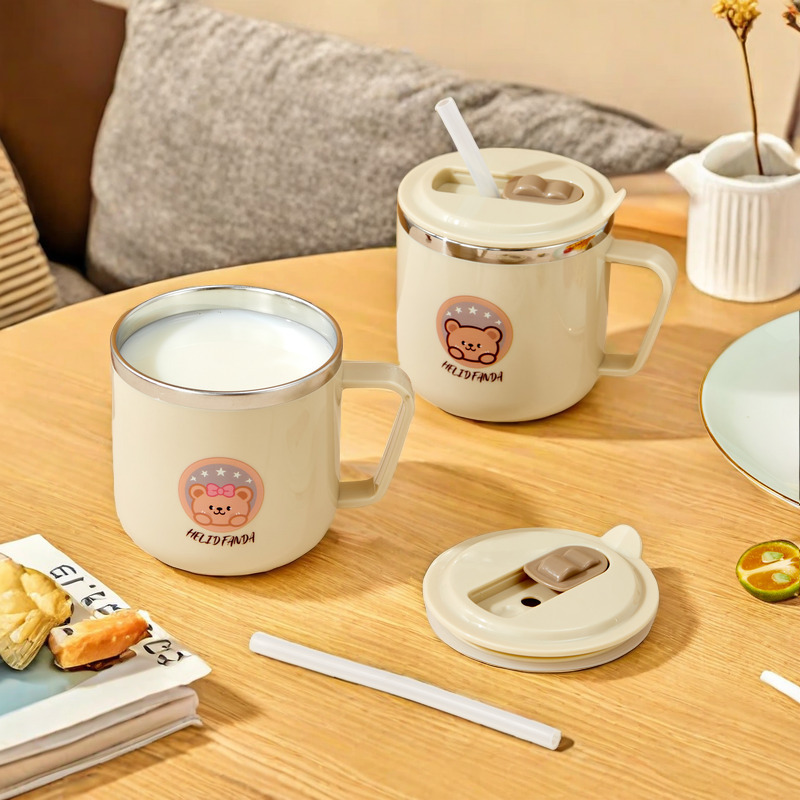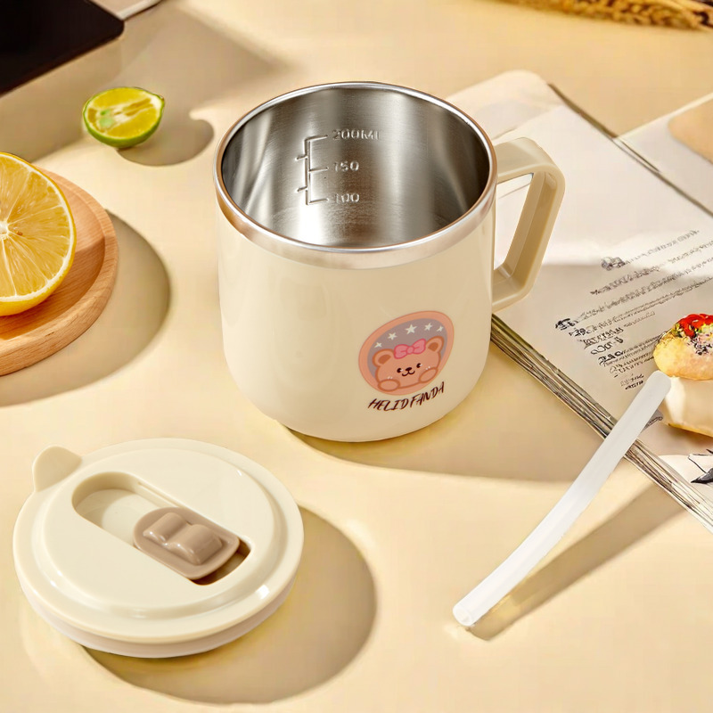漫画316Lカップ乳幼児家庭用ミルク専用ストローカップ目盛付き二重防热かわいいカップ