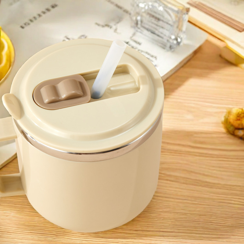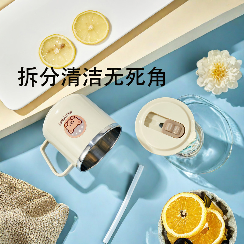 ミルクカップ316ステンレス子供ストローカップハンドル付き高颜値学飲カップ幼稚園赤ちゃん飲料カップ