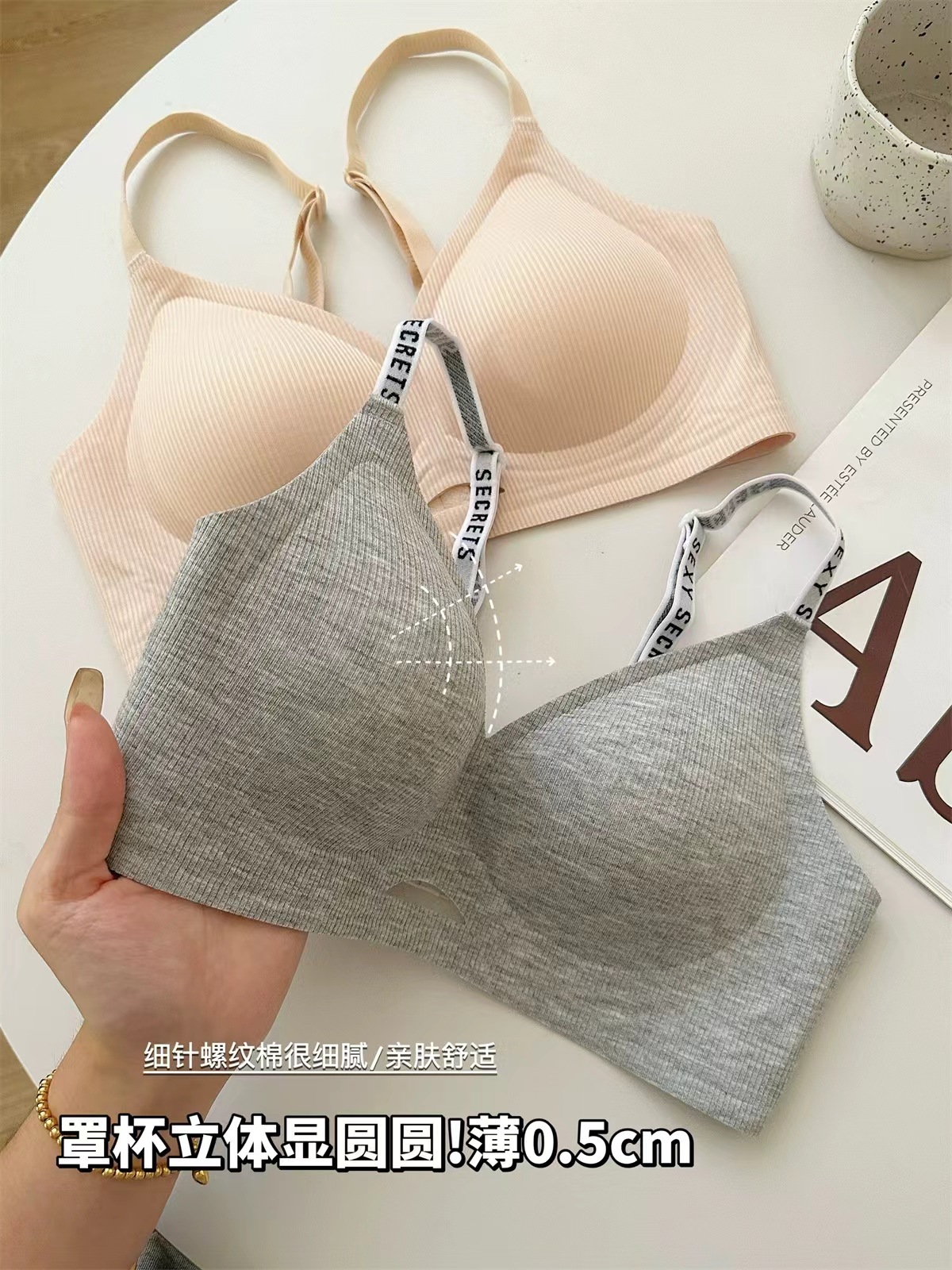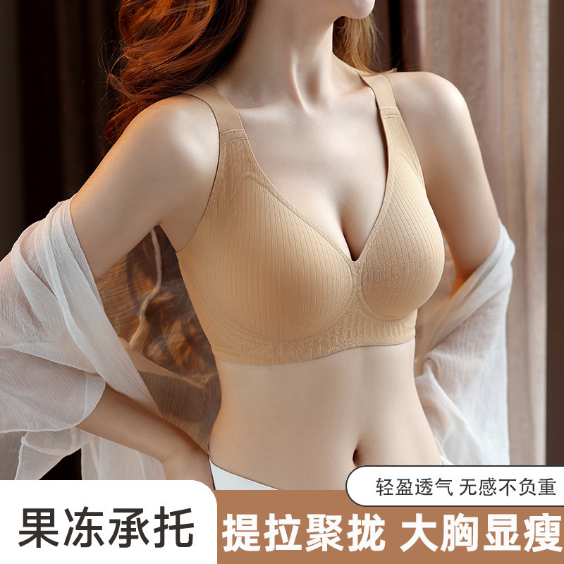 女性用シームレスミルクスキン下着、細いショルダーサスペンダー、固定カップ、コミックバスト拡張、小さな胸、大きなプッシュアップ、美しいバックブラジャー