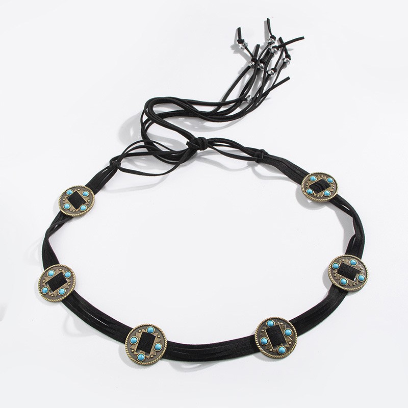 2024新型ボヘミアン風復古モザイク緑松石編み結び民族風女性ロープ