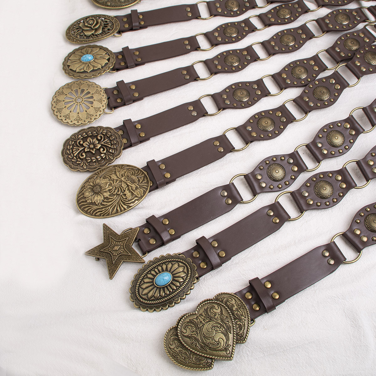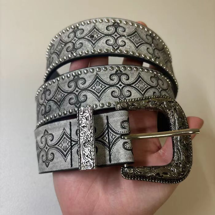 皮带男士2025新款复古铆钉西部腰带 跨境腰带货源