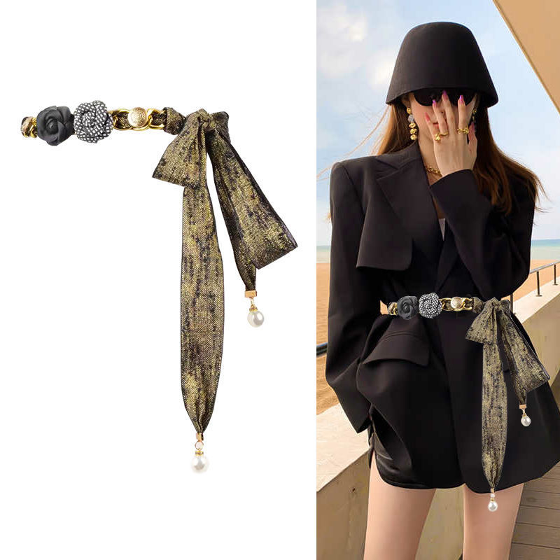 现货中国风花朵腰带女大加长腰西装高级感配饰小众设计丝巾腰封