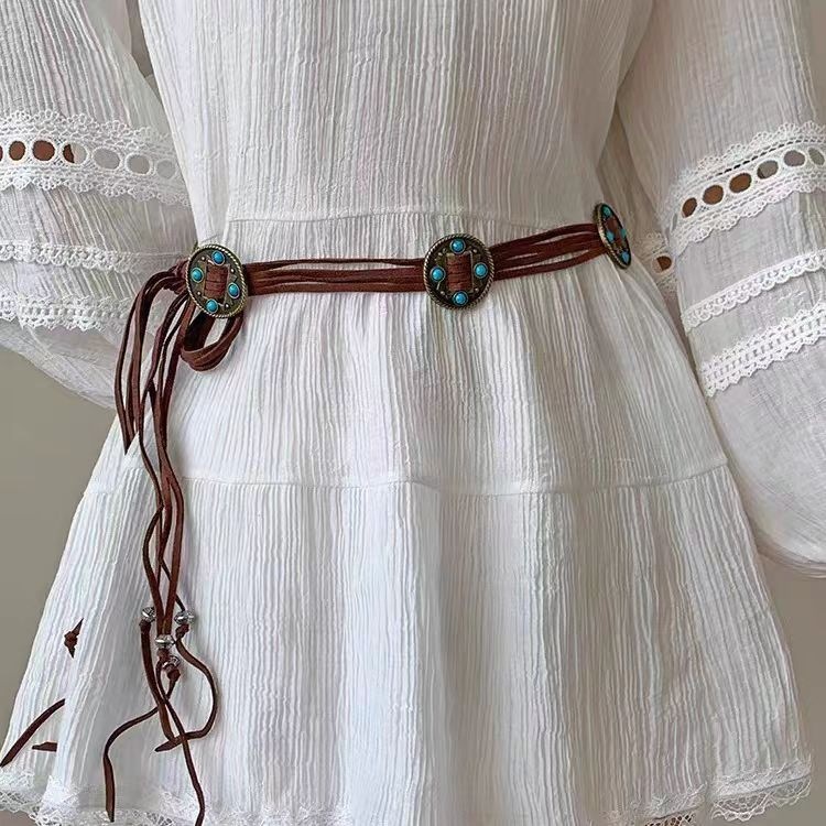 民族風レトロ編み込みベルト、女性用ハンドメイドシミア多用途ウエストチェーン、シンプルワンピース、レトロスタイル