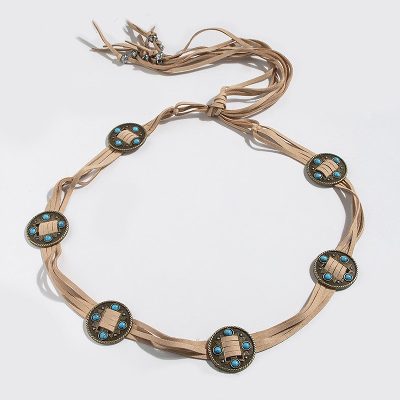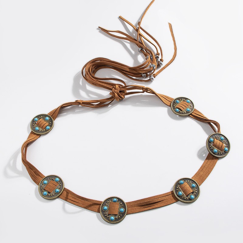 レトロ少数民族風象眼ウエストチェーン2023新型夏ボヘミアンベルトとジーンズベルト潮