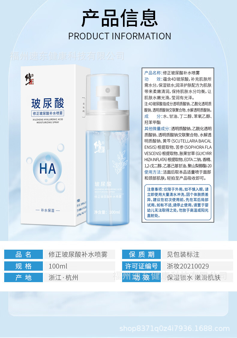 製品仕様 補正ヒアルロン酸保湿スプレー(100ml/本)
