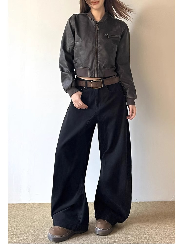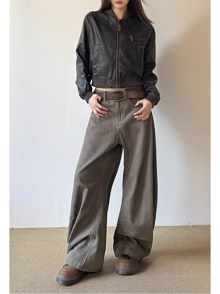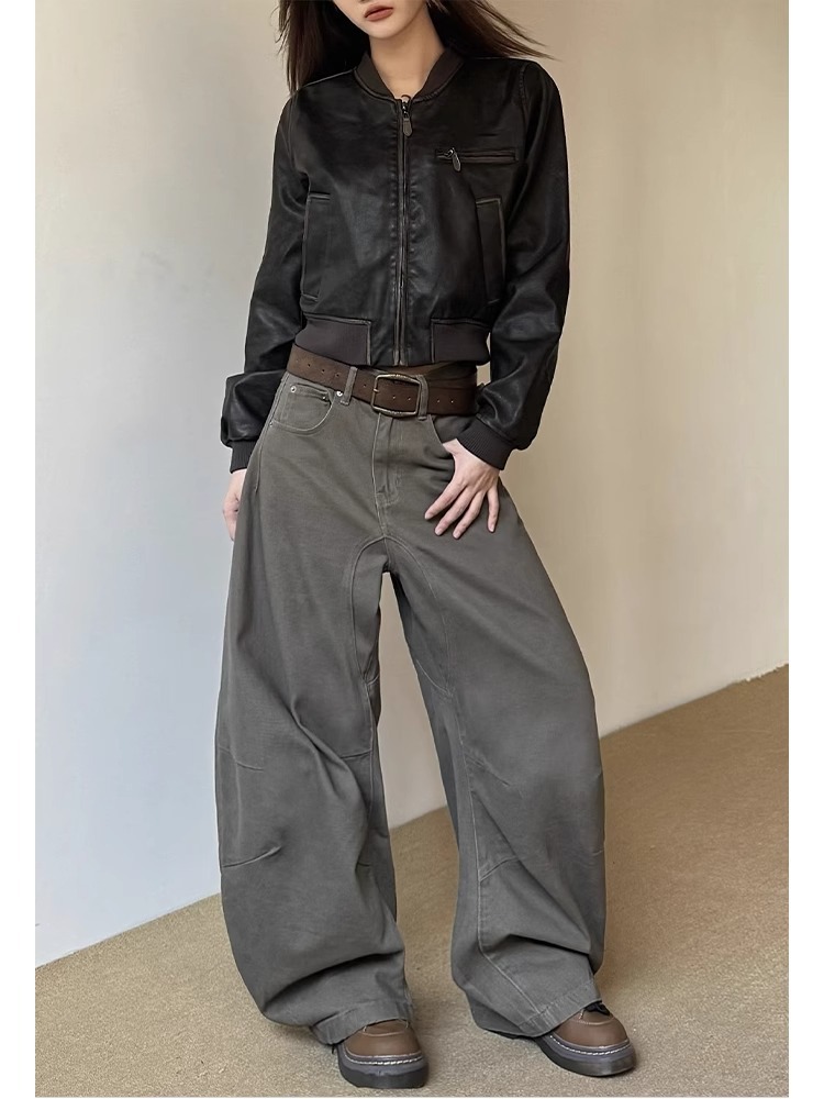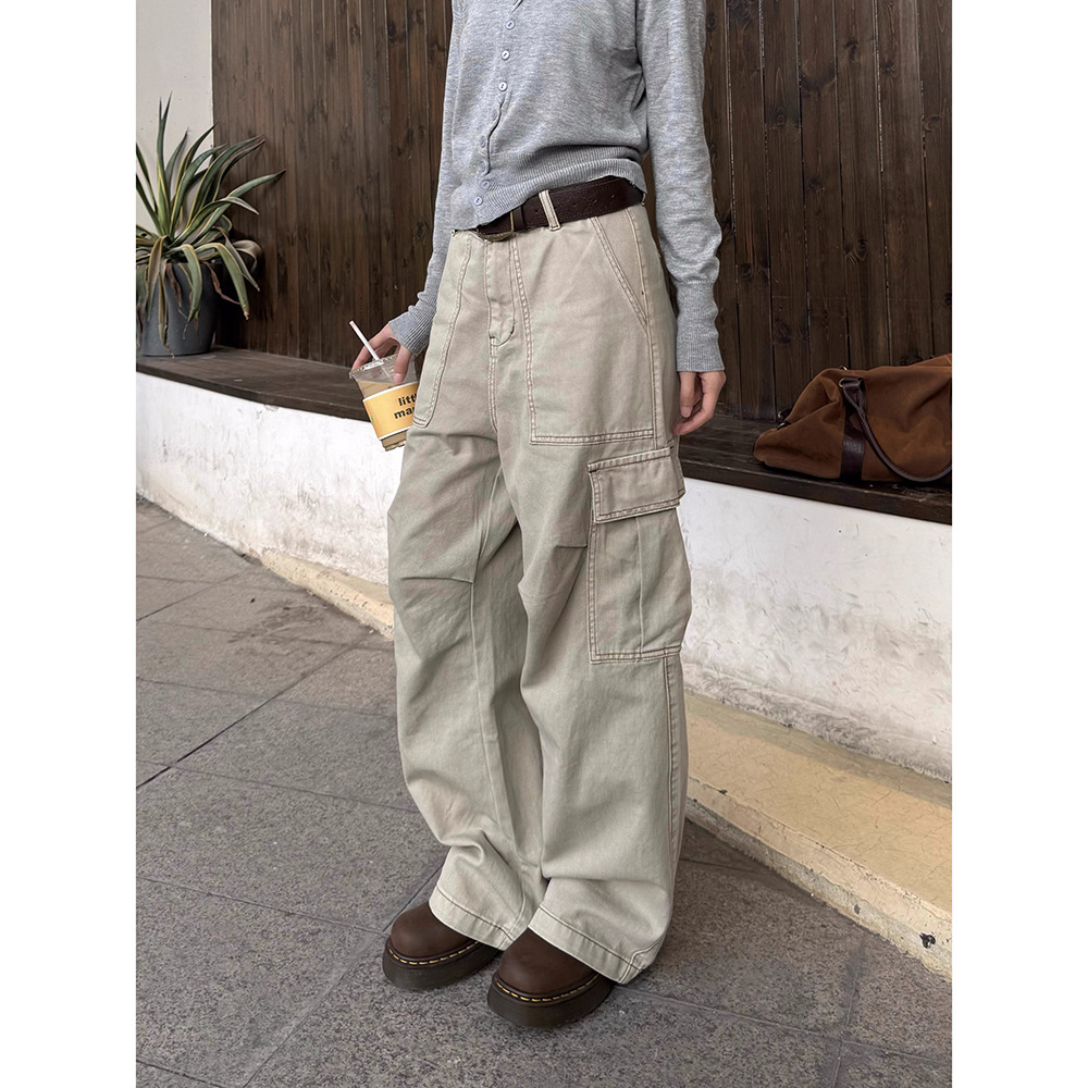 アメリカンレトロゆるいストレート大ポケット工装カジュアルパンツ女性高級感cleanfitワイド脚長ズボン潮