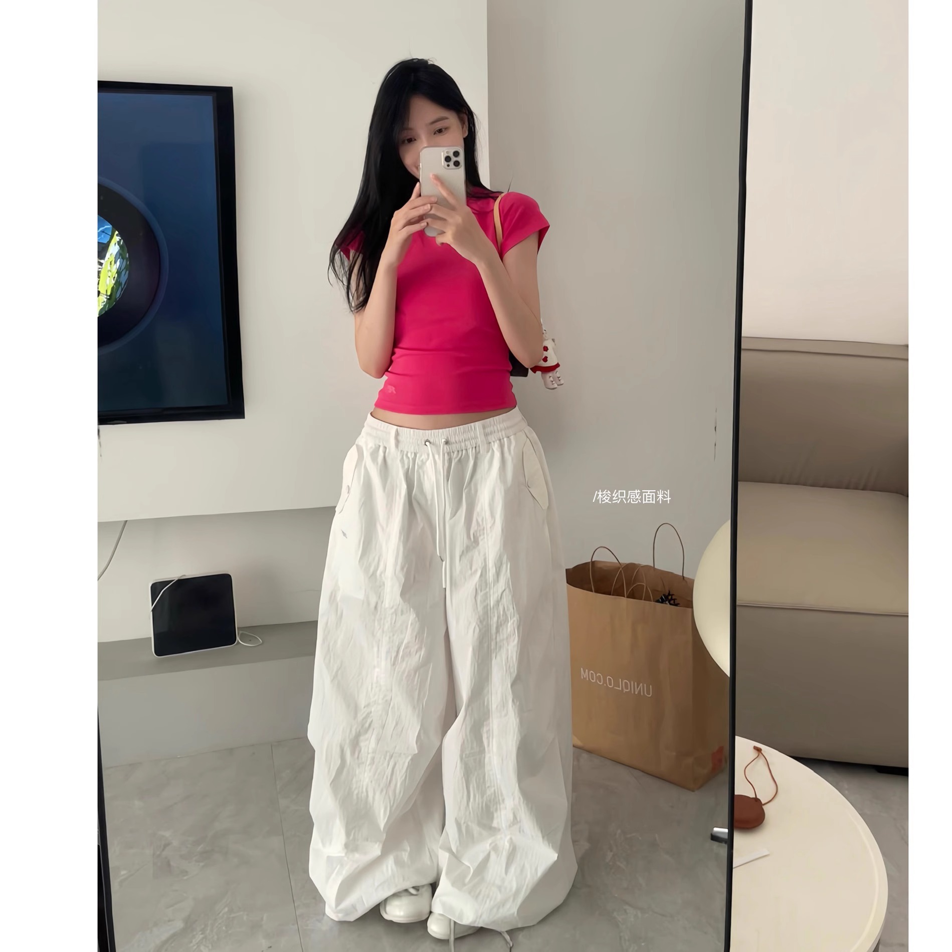 アメリカンニッチ巾着プリーツパラシュートカーゴカジュアルパンツルーズシルエットウエストゴムポケット速乾ロングパンツ