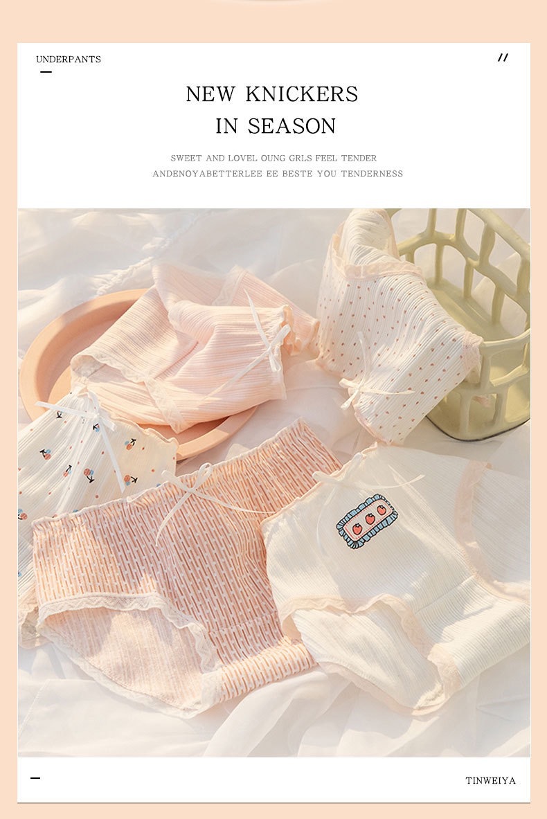 CS033#可爱草莓蝴蝶结内裤女中腰少女日系学生三角裤包臀薄款透气
