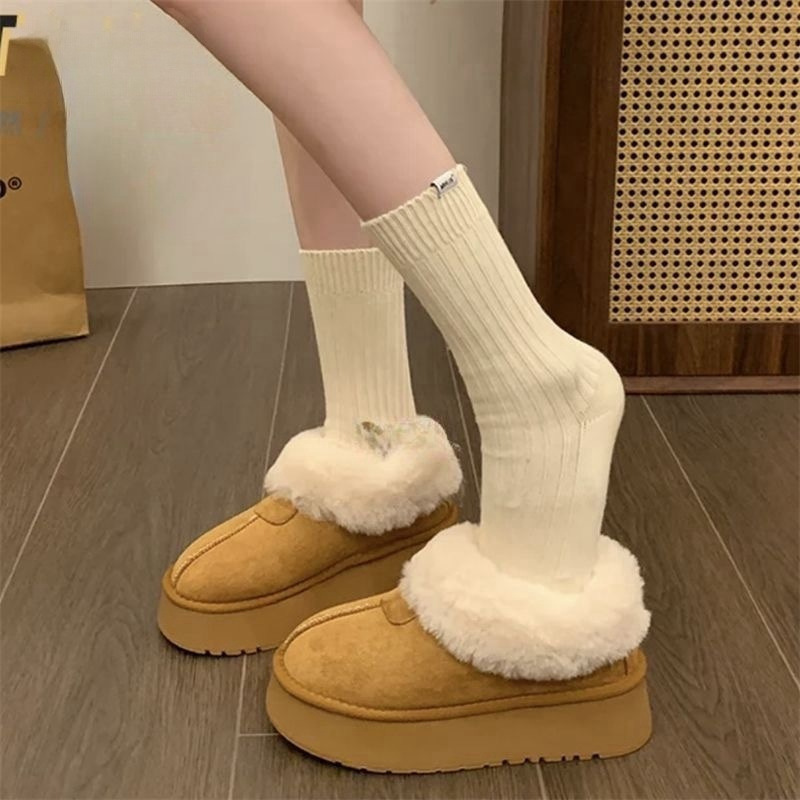 白い厚い底の雪の靴の女性の冬の2025年の新型のベルベットは短い筒の毛の短い筒の綿の靴のパンの靴を厚くします。