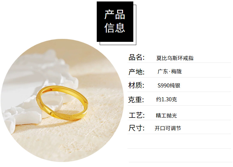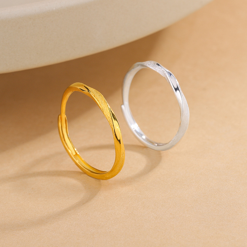 999純銀メビウスカップルリング、ファッショナブルで個性的な男女兼用指輪、軽やかな高級感、シンプルなリング、女性用