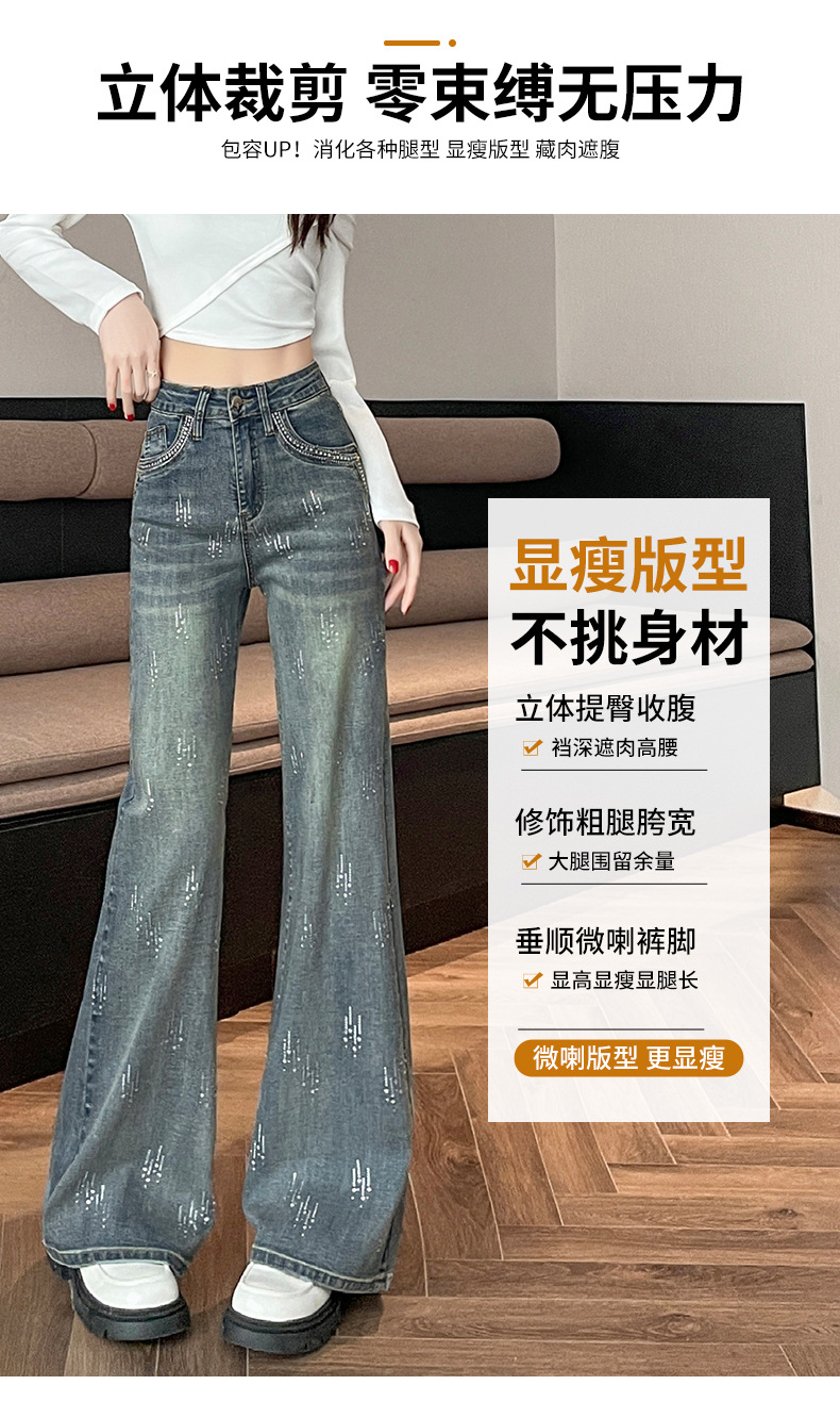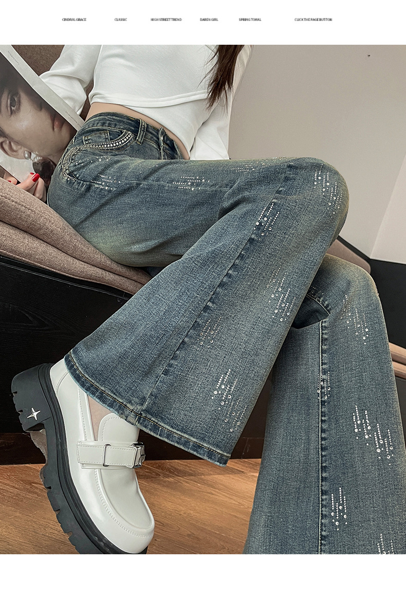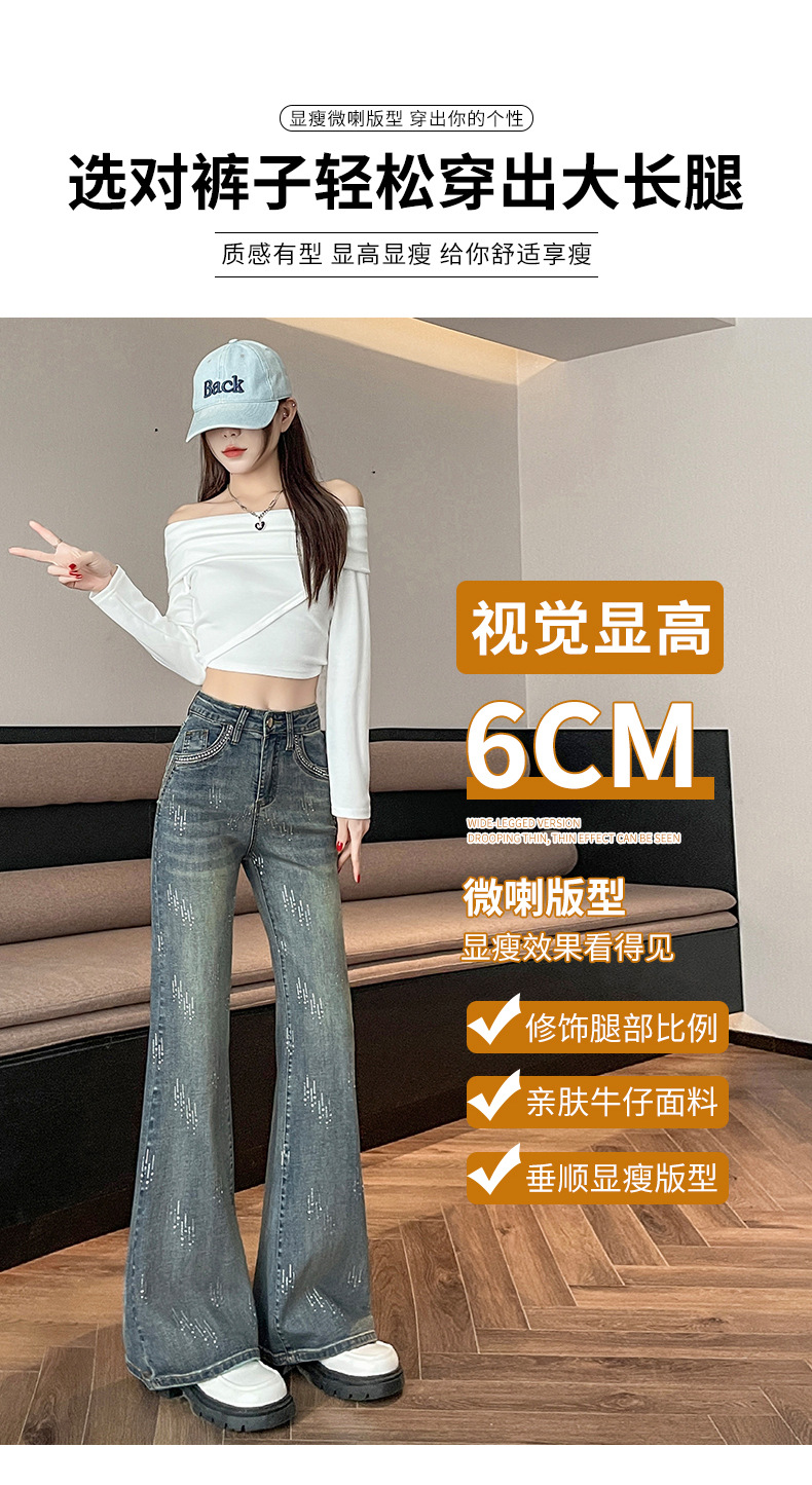 满天星辣妹牛仔微喇裤女秋冬季新款设计感高腰烫钻喇叭拖地裤子
