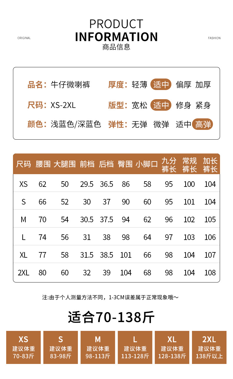 薄い色の桃のお尻の小さいラッパのジーパンの女性の春と秋の新型の高い腰の小さい人の蝶結びの馬蹄のズボン
