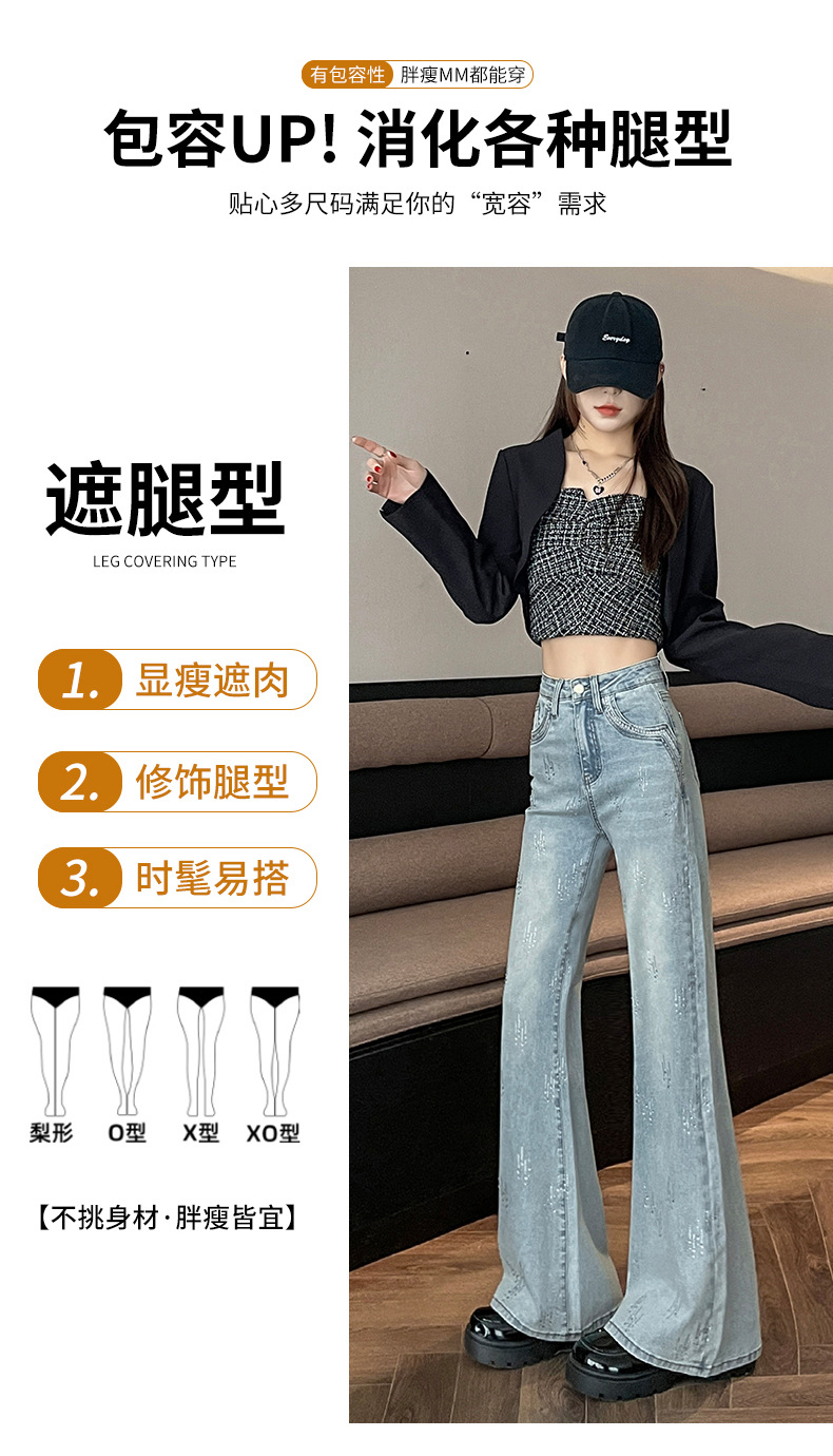 喇叭阔腿牛仔裤女2025冬季烫钻设计感百搭高腰显瘦垂感阔腿拖地裤