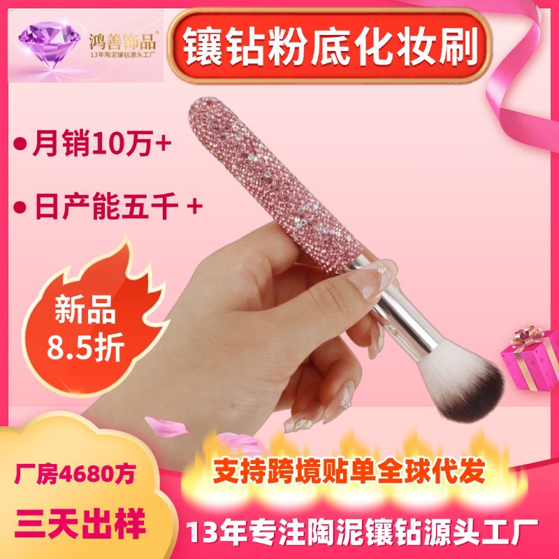 跨境爆款闪镶水钻轻奢高光遮瑕腮红粉底刷创意沧州散粉眼影化妆刷