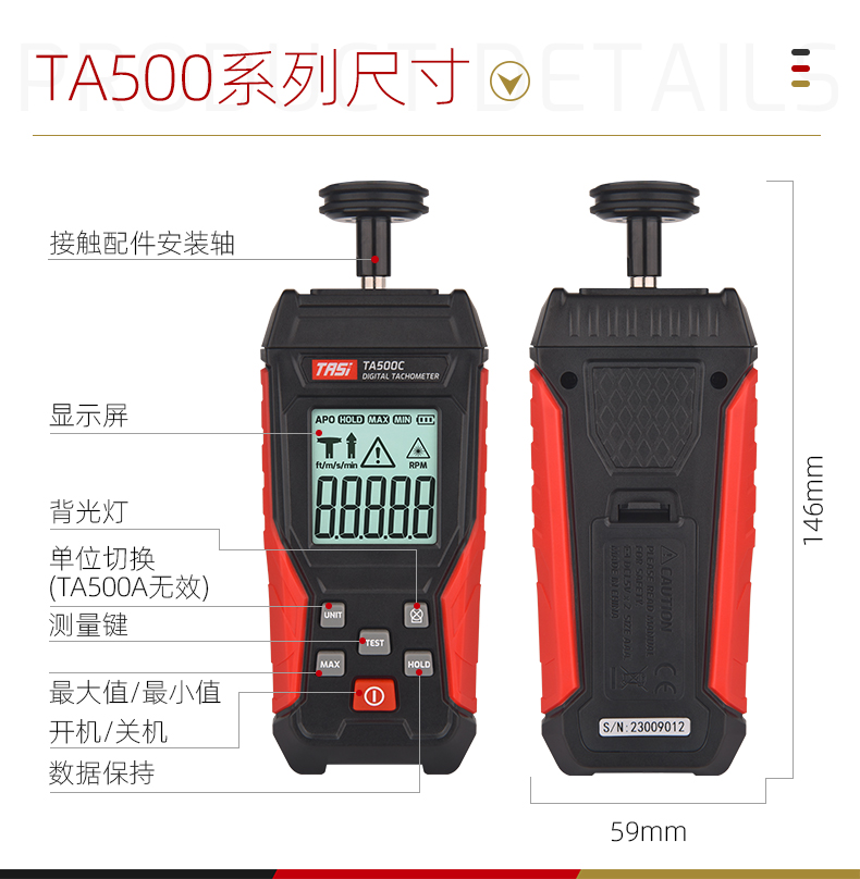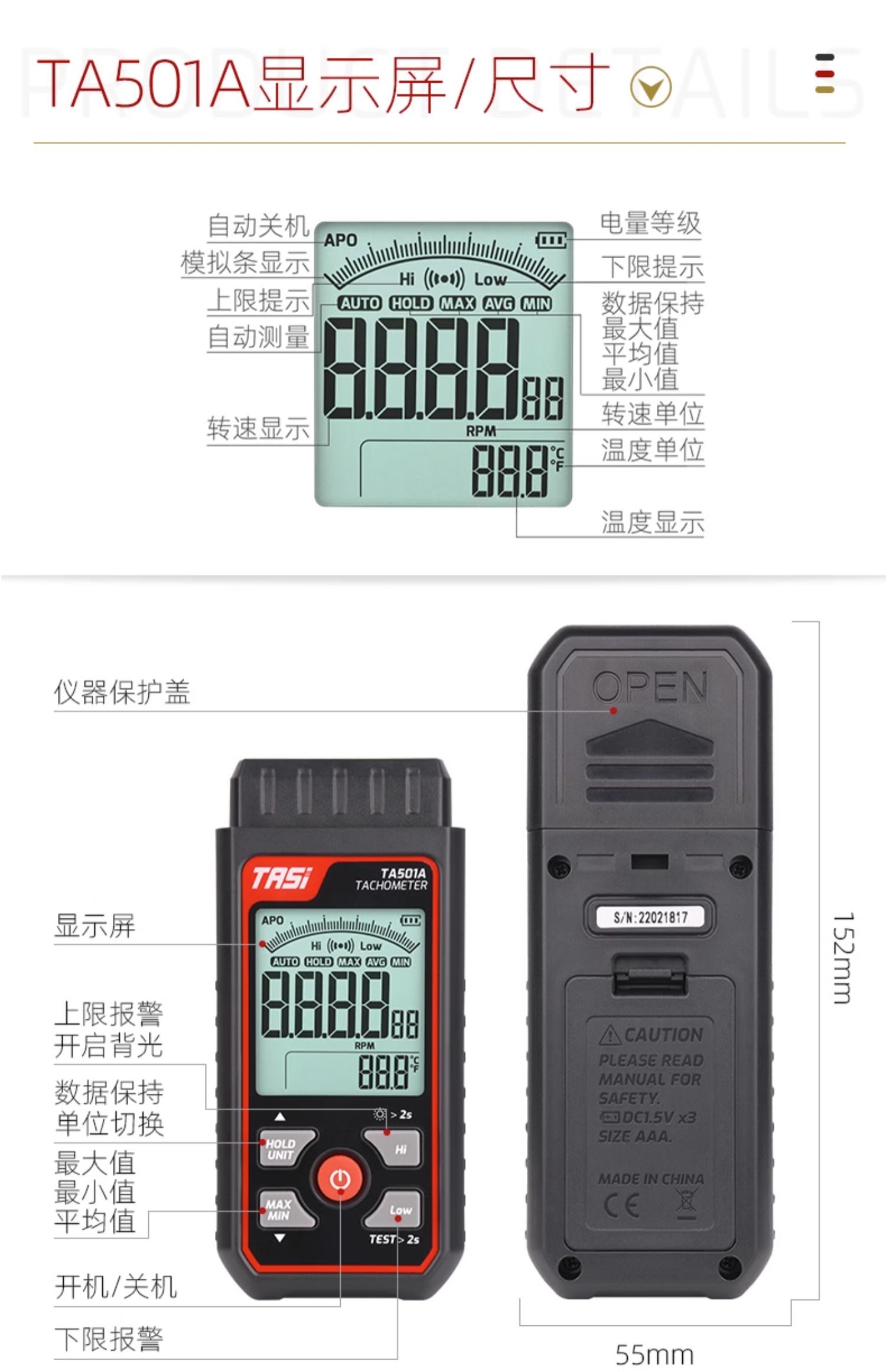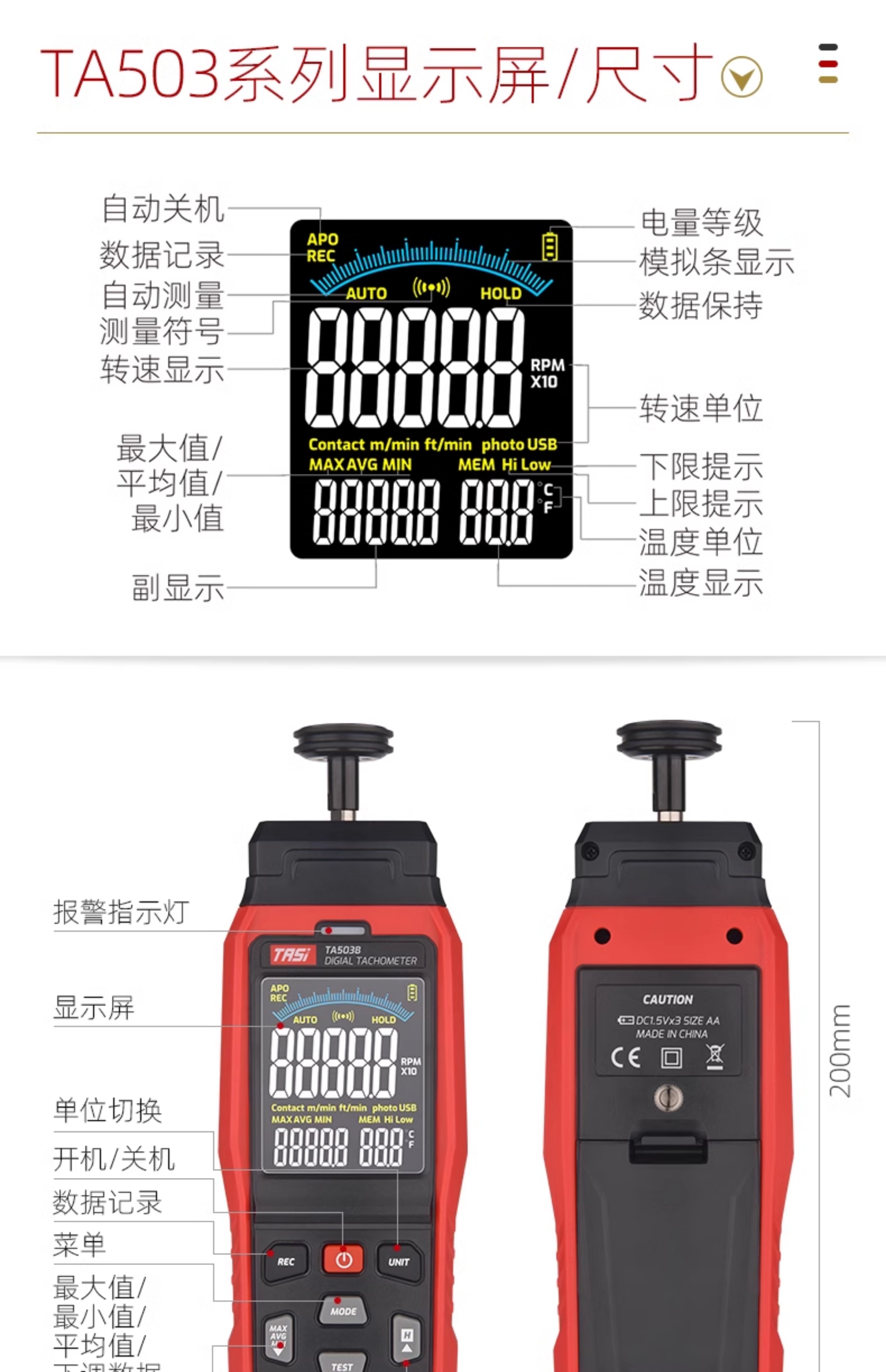 特安斯レーザー回転速度計デジタル表示接触式回転速度計モーター回転速度測定器TA500C