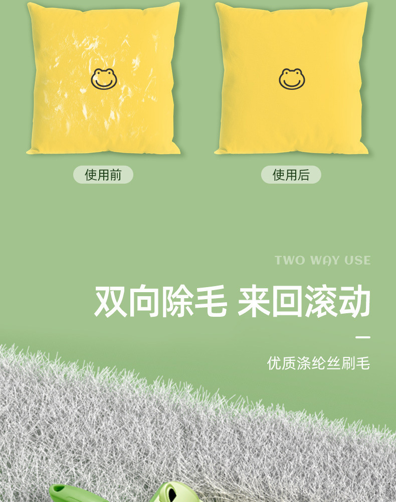 カエル型ペット用毛取りローラー、双方向毛取りブラシ、猫犬服、ソファ、卸売ペット用毛取りツール