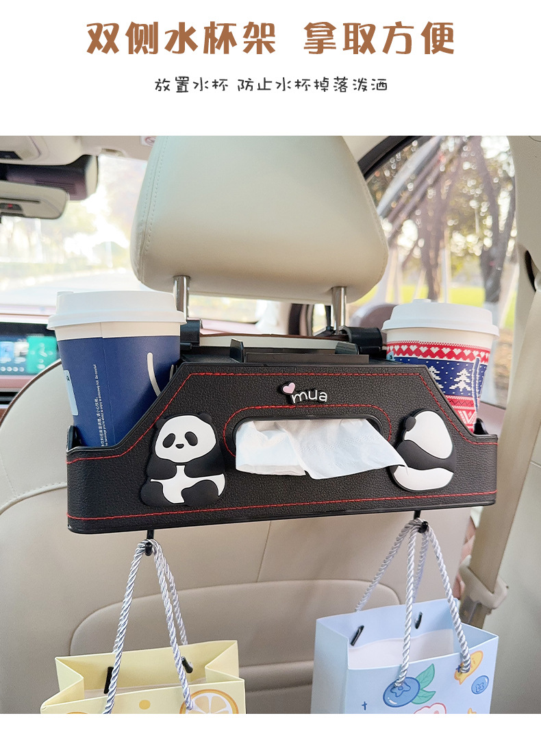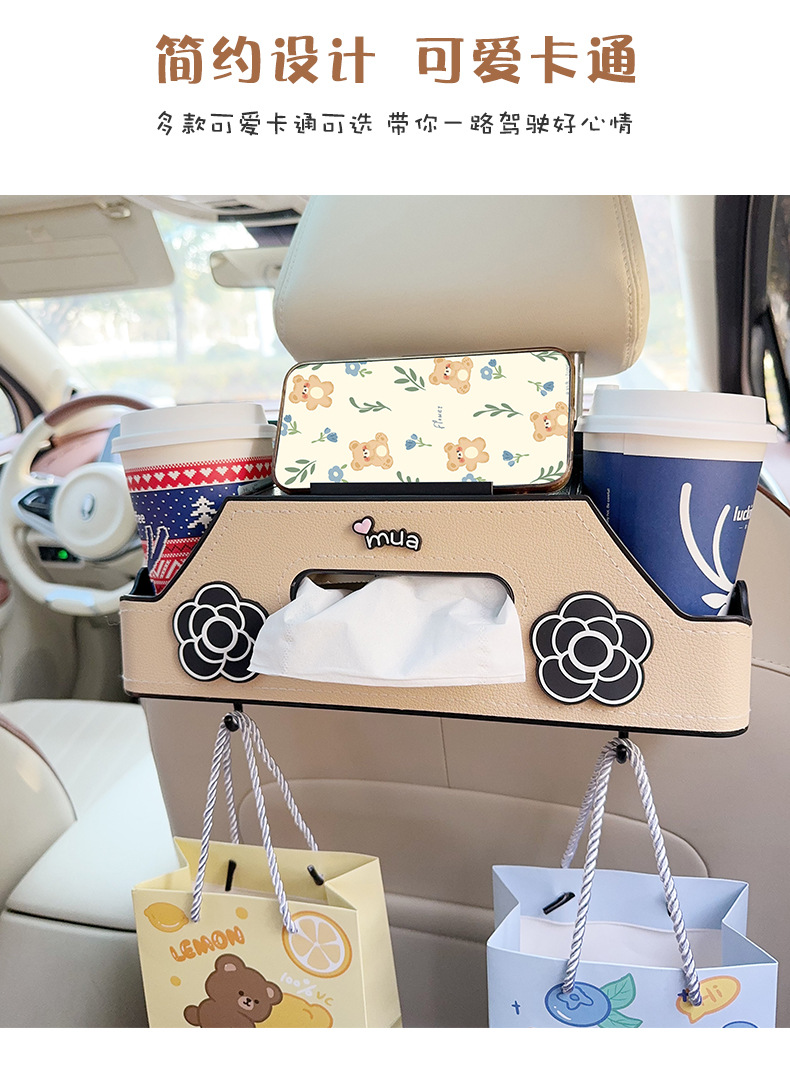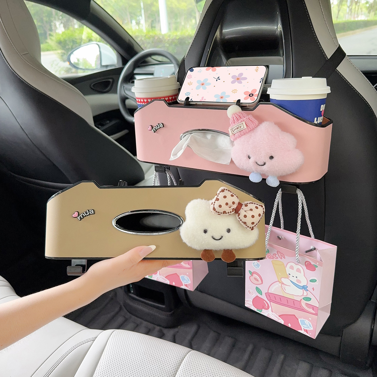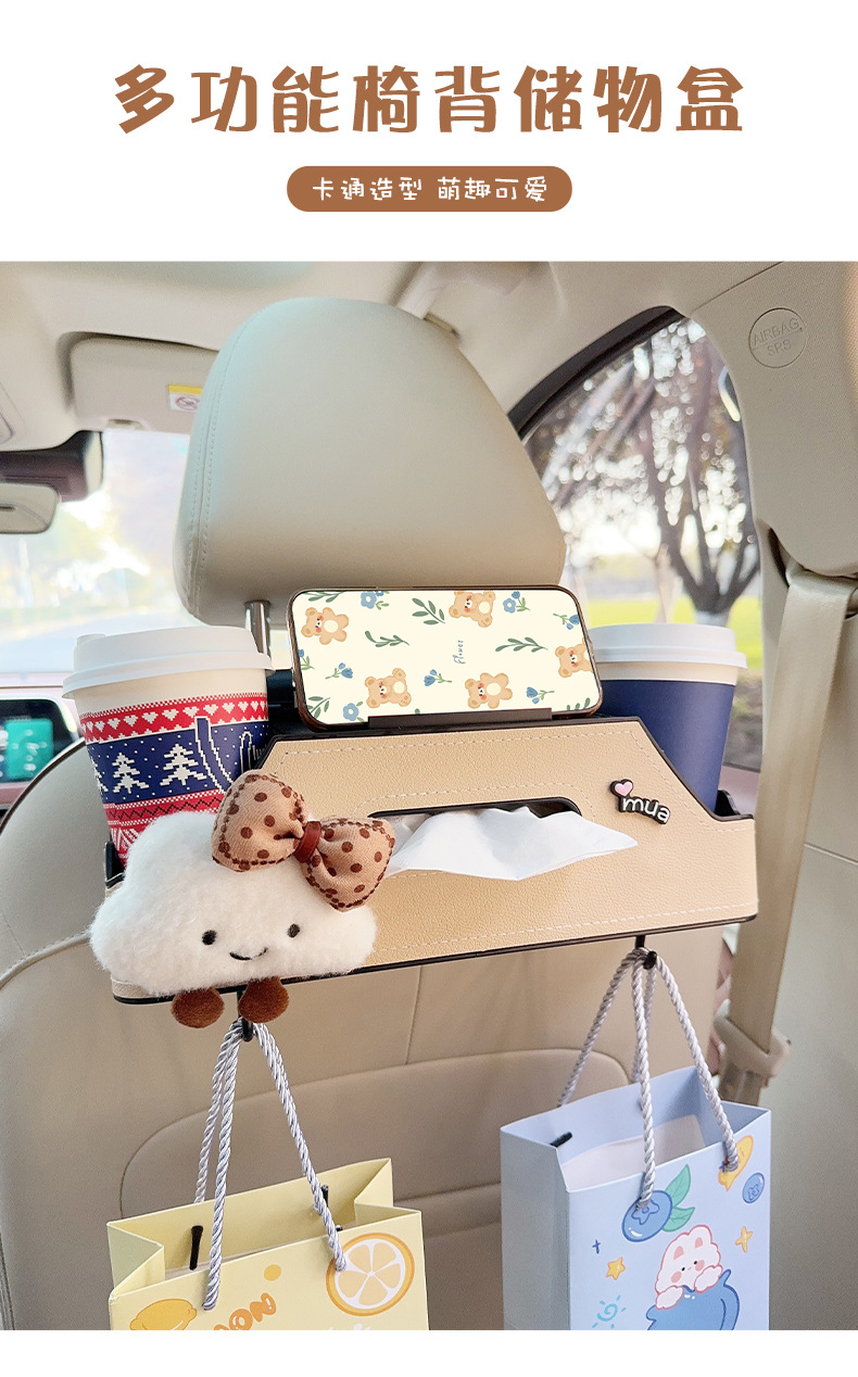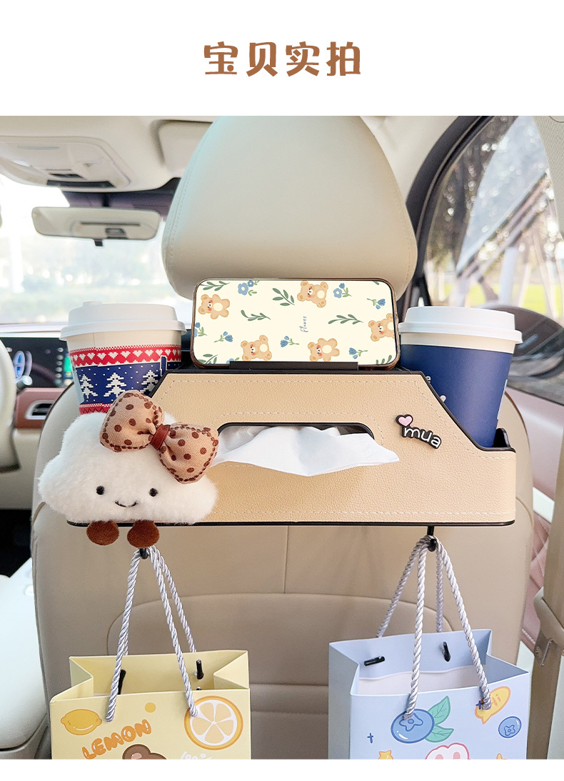 车载纸巾盒汽车座椅后背多功能收纳盒卡通可爱后排置物架水杯架女