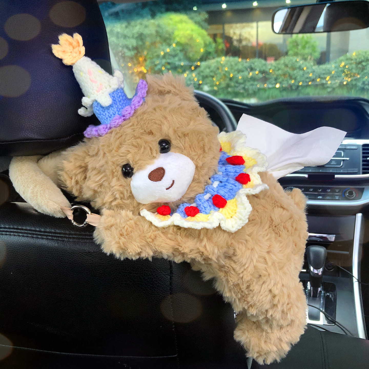 车载纸巾盒汽车纸抽盒创意可爱蓝冰淇淋公主车内收纳挂袋毛绒玩偶