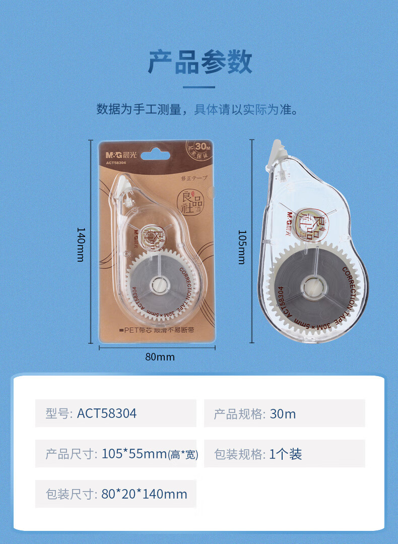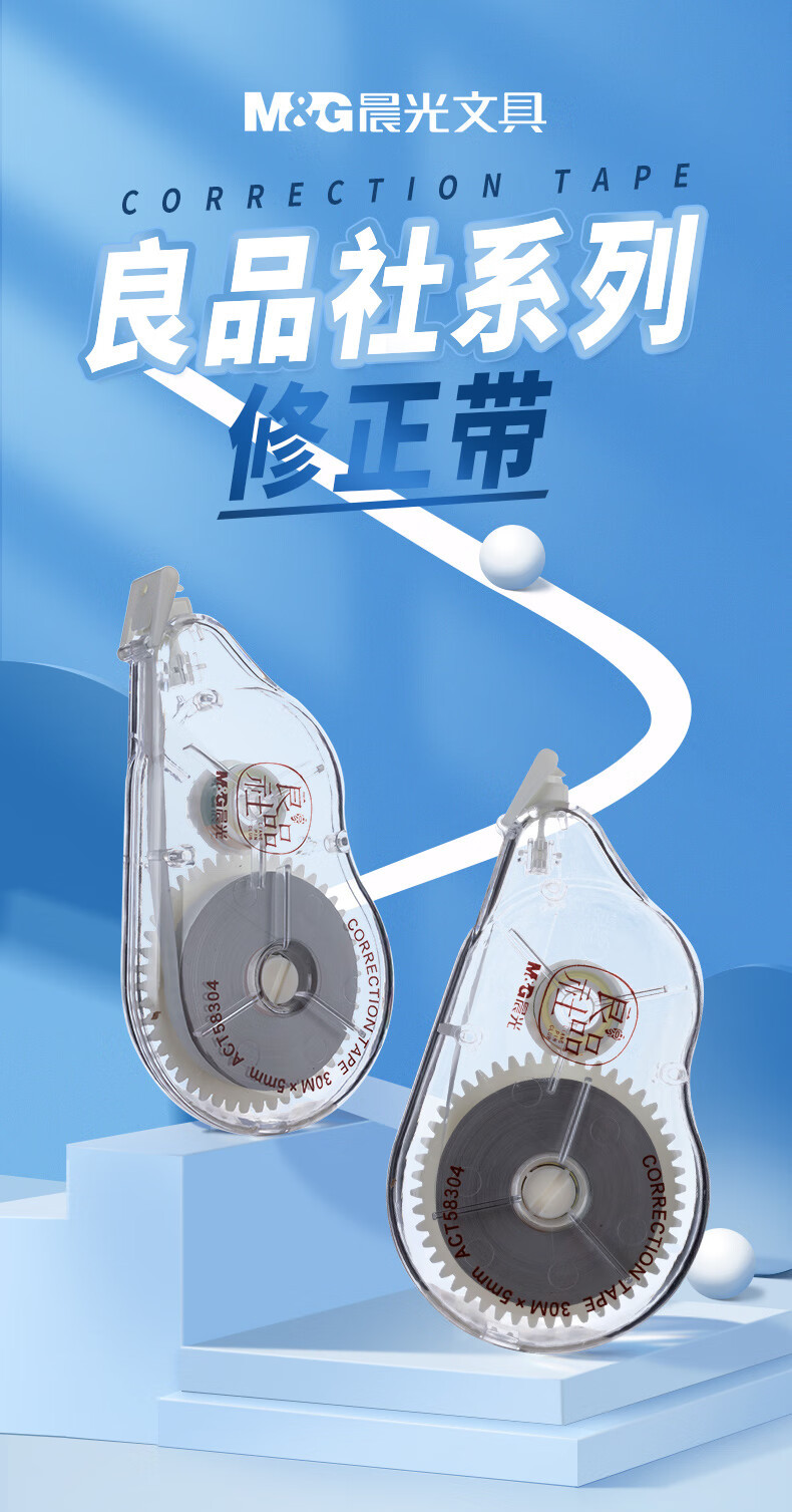 晨光ACT58304良品社修正带改正带30m米涂改错带PET透明带芯