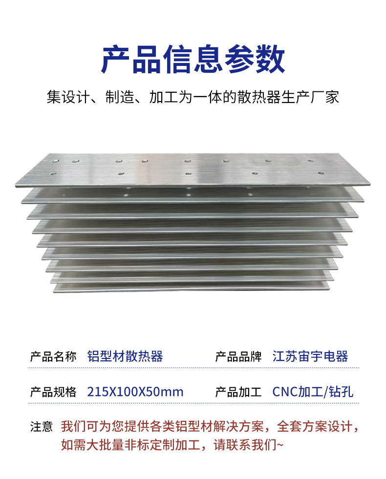 アルミ形材215x100x50mm放熱器加工アルミ形材電子放熱器工業メーカー供給