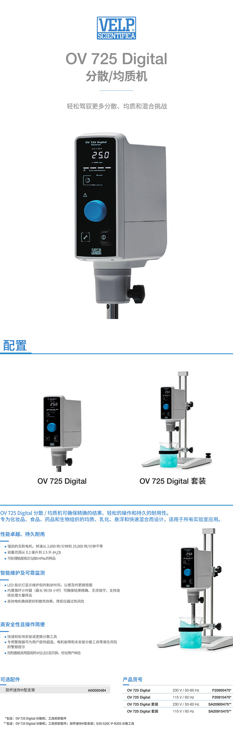 イタリア VELP Laboratories OV725 デジタルホモジナイザー単一機およびセット分散ホモジナイザーミキシング機器