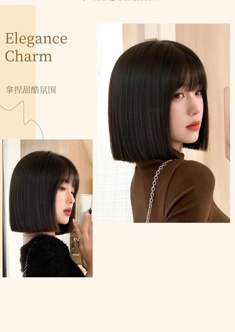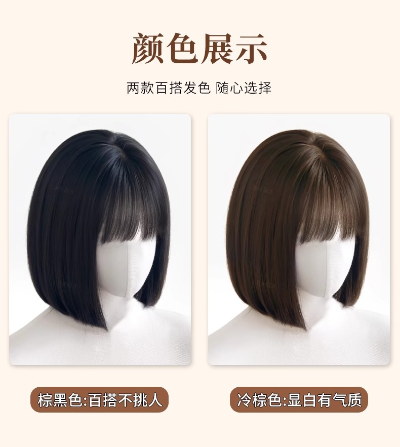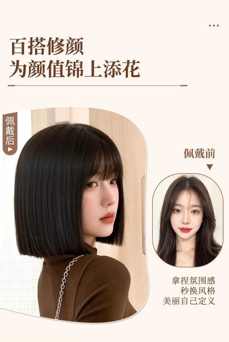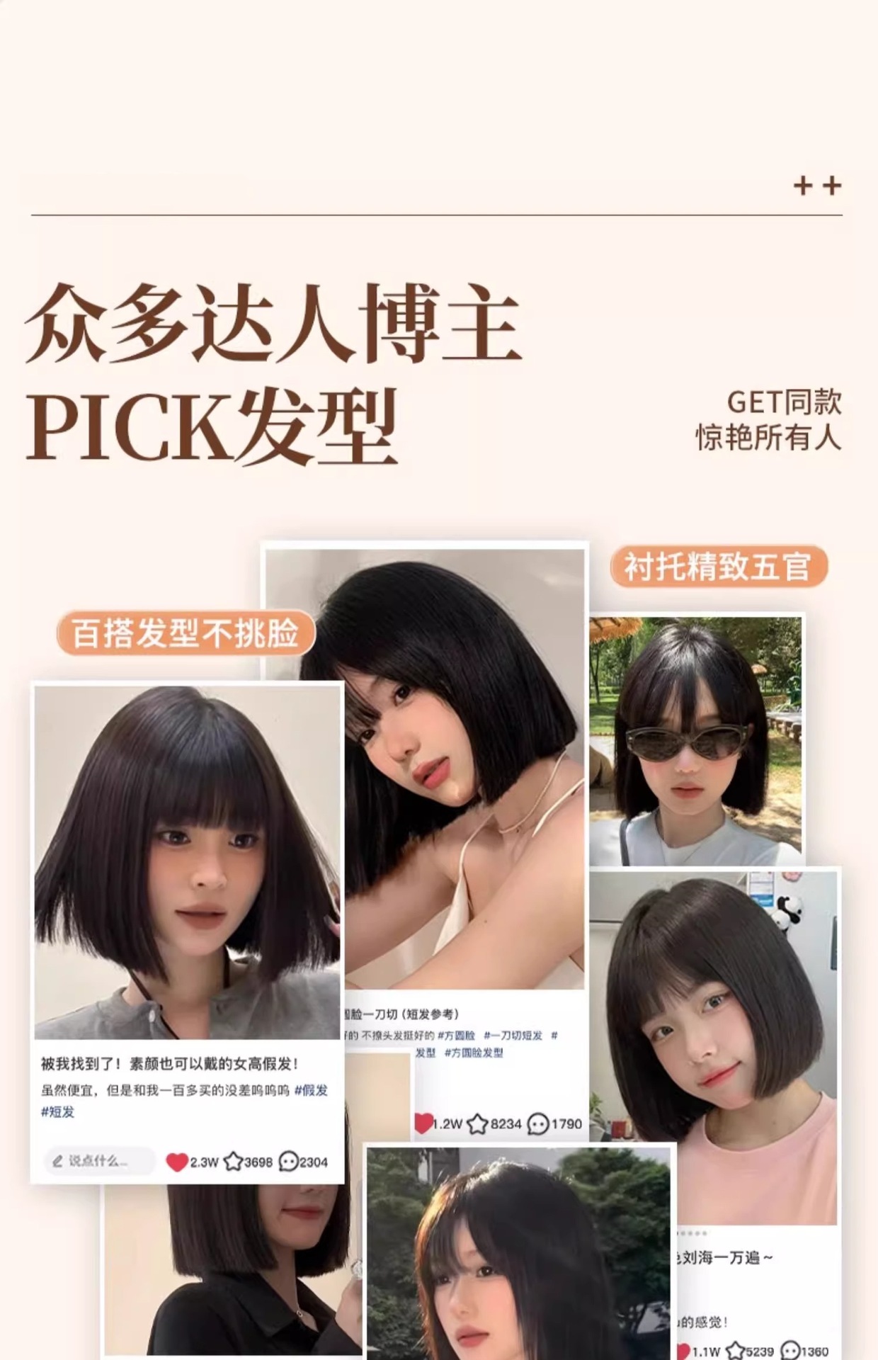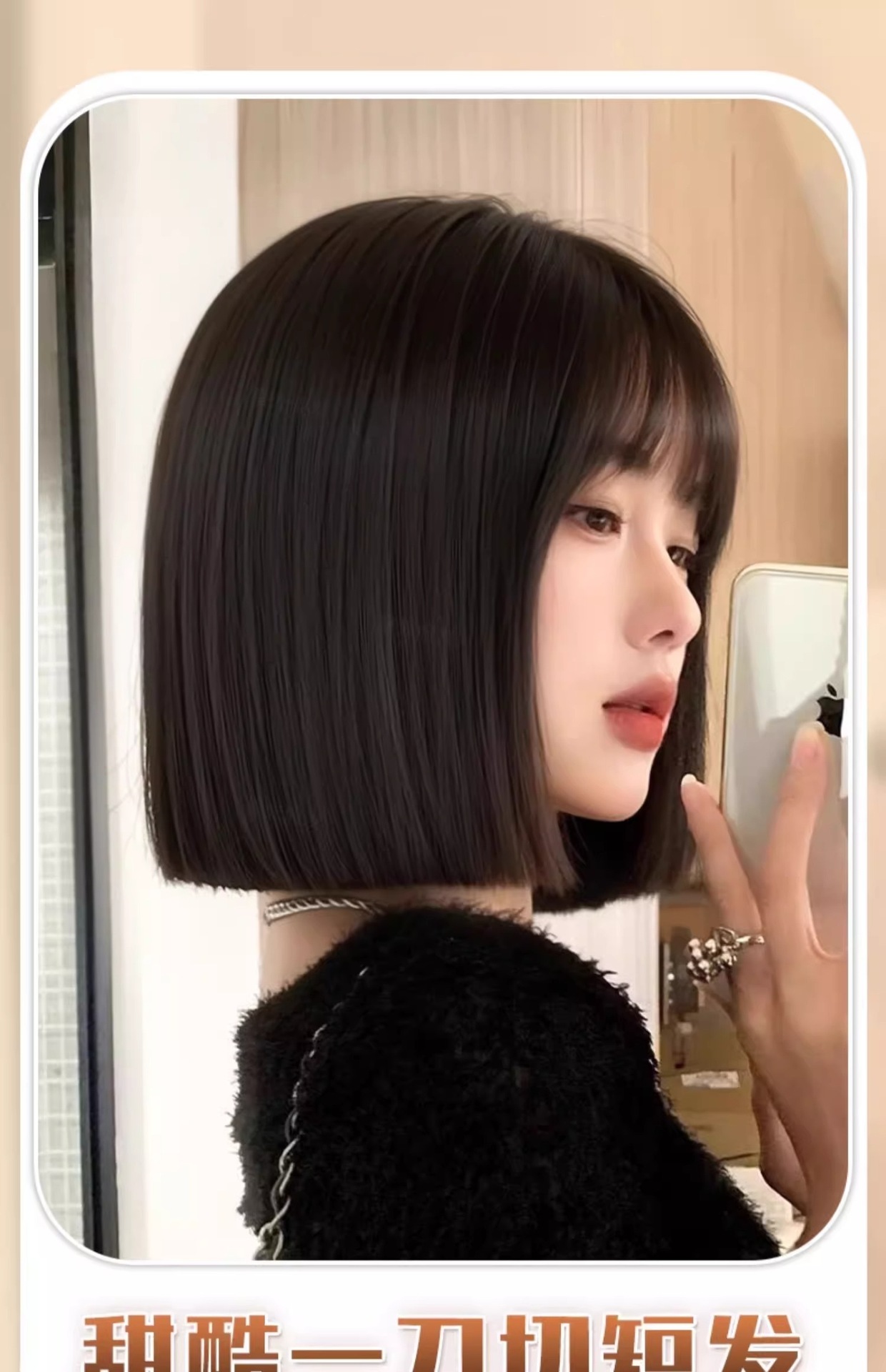 科尼假发网红韩式假发女短发一刀切气质修脸减龄中分亚麻浅棕短直