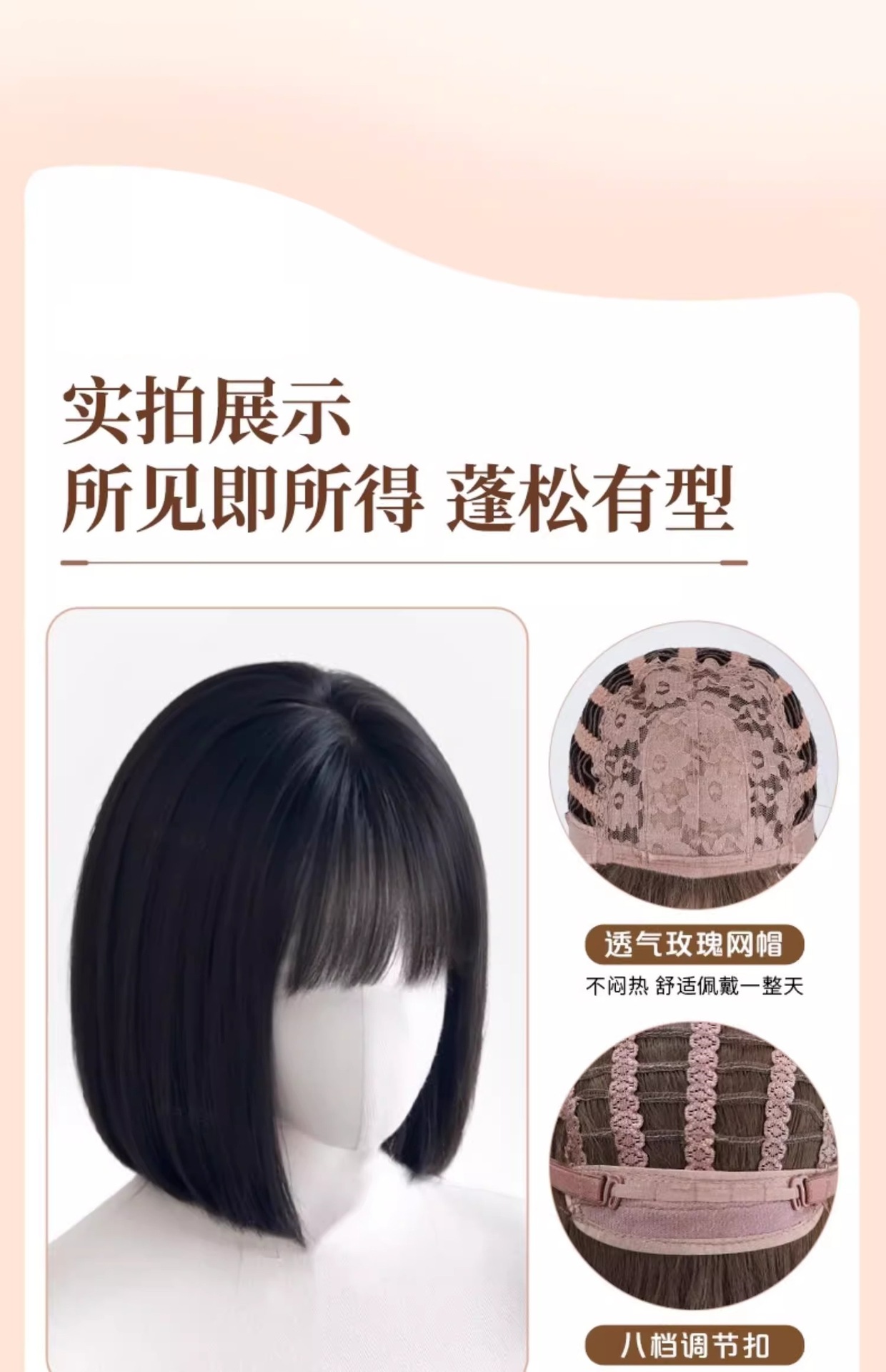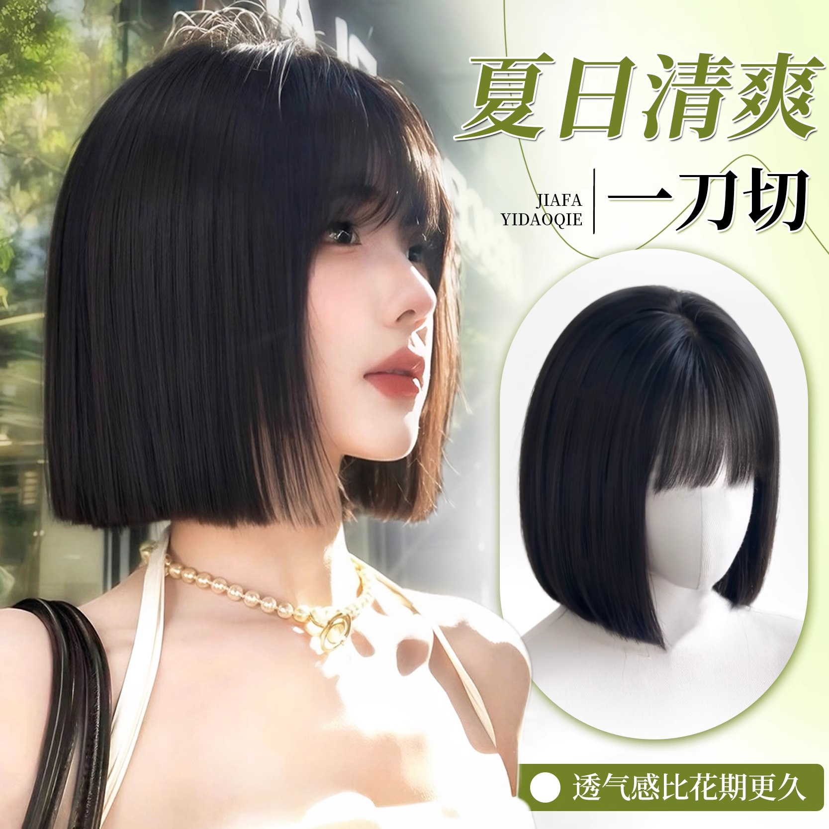 短发假发女一刀切波波头仿真发自然蓬松减龄日常整顶假发女全头套