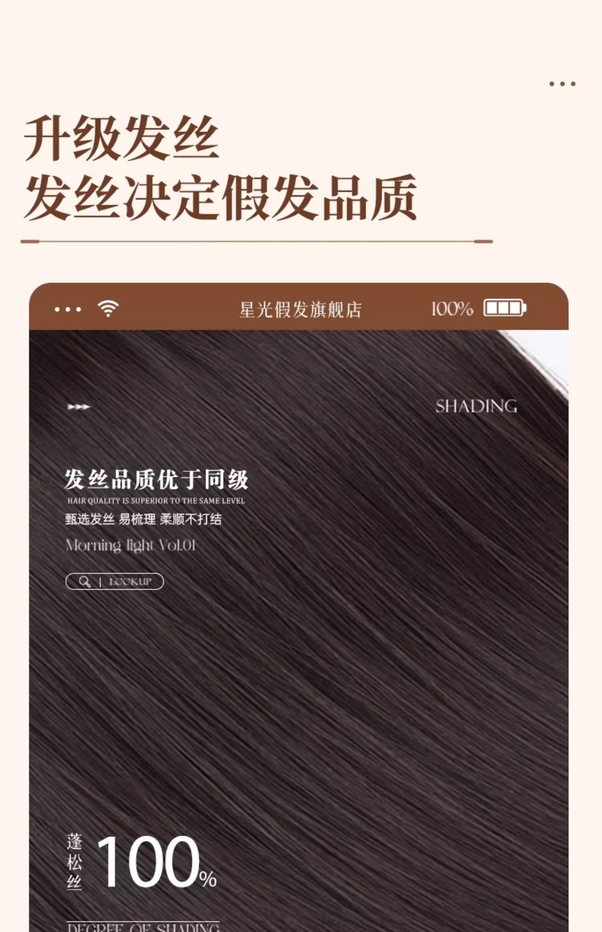 かつらの全頭カバーの女性は自然でふわふわしています。